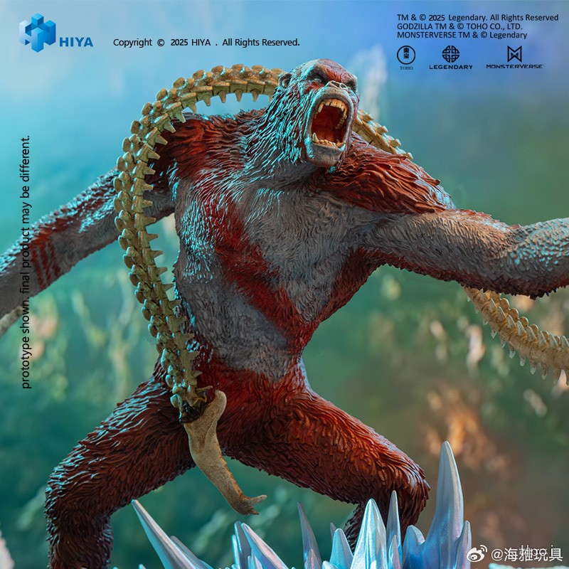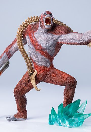 全新STYLIST系列 刀疤王 不可动手办,参考《哥斯拉大战金刚2:帝国崛起》电影原始CG数据,将片中造型立体手办化。本品全高约15CM,其标志性的橘红色毛发极具威慑力,独特的白色部落标记遍布周身,四肢修长且覆满战痕,肌肉线条充满爆发力。刀疤王怒目而视,幽蓝目光仿佛穿透前方,嘶吼的表情狰狞逼真,尽显征服者的狂暴姿态。
