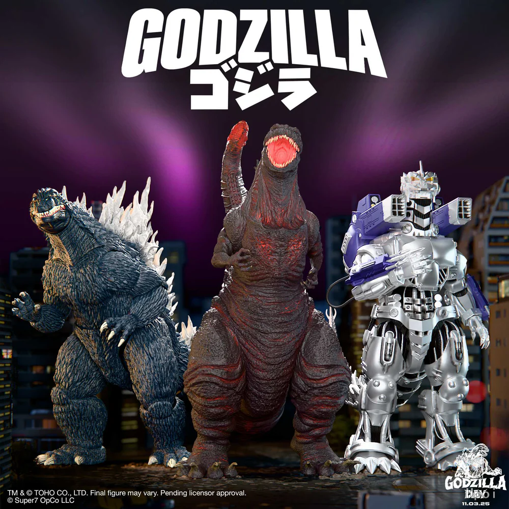 清空你架子上的所有高楼大厦。东宝极致系列!怪兽狂潮新一波即将来袭。为你收藏的哥斯拉系列做好准备,迎接期待已久的真哥斯拉、战龙哥斯拉(2002年)和三式机龙模型。每款收藏模型均为7英寸比例且具有高度可动关节,能重现你最喜爱的怪兽电影场景,可摆放在书架、展示柜或你预想的下一个怪兽袭击地点。这些限量预订款还附带符合每个怪物特征的专属配件。所有巨兽级“怪兽之王”能量延续至收藏者友好的透明窗式包装,包含原创Super7艺术设计。如果你感觉到地面震动,那可能意味着这震撼新系列已准备踏碎、咆哮并闯入你的收藏——立即行动!