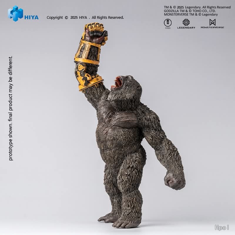 全新STYLIST系列 金刚 机械手套版 不可动手办,参考《哥斯拉大战金刚2:帝国崛起》电影原始CG数据,以静态形式还原电影中的震撼瞬间,定格金刚怒吼扬臂、蓄势待发的经典造型。本品全高约22CM,金刚本体高度约16CM,肌理分明的毛发表面与厚重的肌肉线条层次细致刻画。胸口深刻战痕与獠牙怒吼的表情,尽显金刚历经无数战斗后不屈的生命意志与王者威严。采用多层渐变涂装,呈现出贴近真实生物的光影质感。其标志性的黄色机械手套以金属质感与做旧效果突出厚重力量,机械结构细节清晰可见。生物美学与机械质感交相呼应,以极具冲击力的造型展现王者力量,再现金刚怒吼天际、展露王者归来的震撼瞬间。