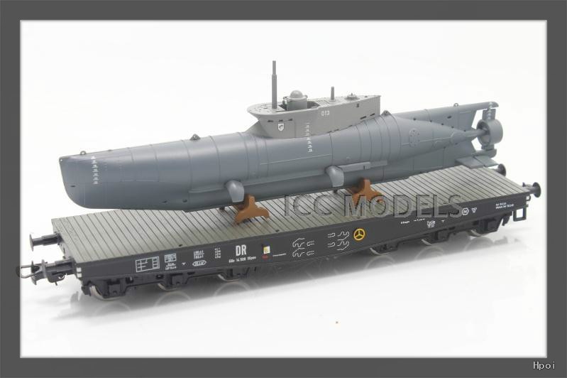 中文名称:HO比例 L235730 德国 海豹微型潜艇+6轴铁路平板车