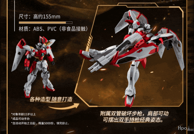 二. 联动实物周边共2款;其中:联名GUNDAM UNIVERSE艾比安高达(必胜客定制款)5000份,GUNDAM UNIVERSE飞翼高达零式(必胜客定制款)5000份;均自本活动开始之日起随餐发放,发完即止。如活动产品售完,则本活动提前结束。