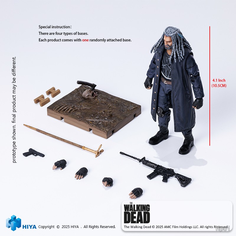 这款全新EXQUISITE MINI系列以以西结可动人偶,全高约10.5cm,以其在《行尸走肉》剧中形象為原型,忠实再现剧中标誌性造型。人物头雕刻画其冷静而坚定的神情,灰白色辫子髮型层次分明,尽显末世领袖的沉稳与威严。身著深色长风衣搭配防护背心与作战裤装扮。钮扣金属质感、护具与腰带扣件细节以细腻涂装真实再现。