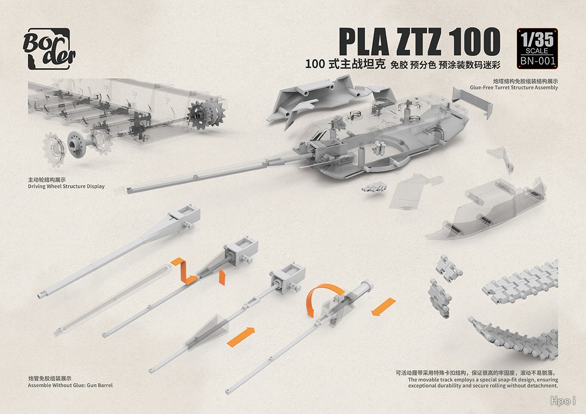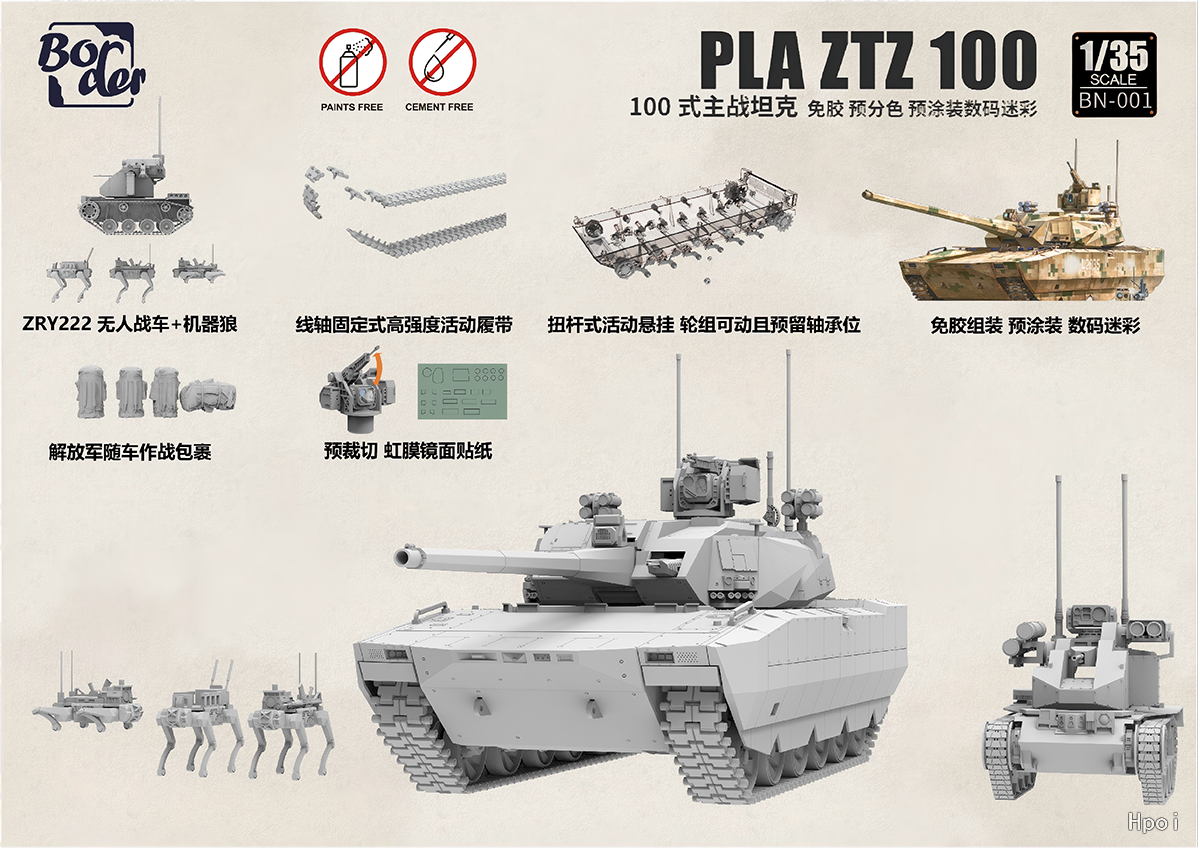 中文名称:BN001 中国 PLA ZTZ-100 100式主战坦克 免胶预分色 预涂装数码迷彩