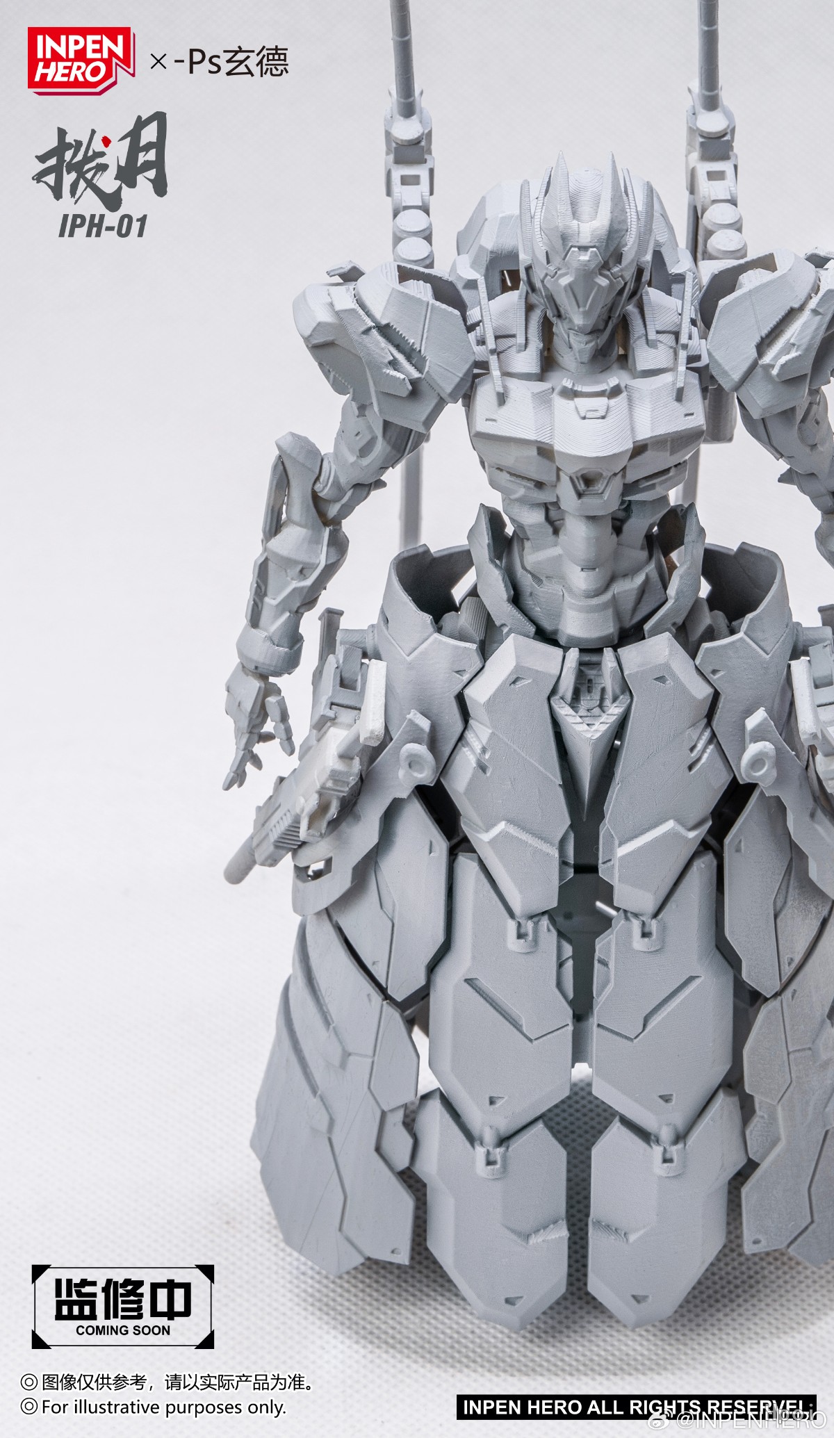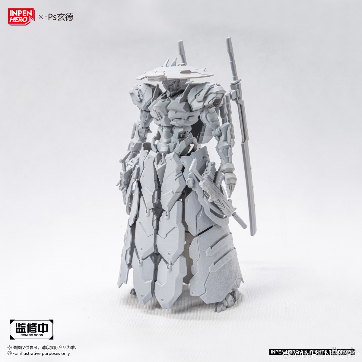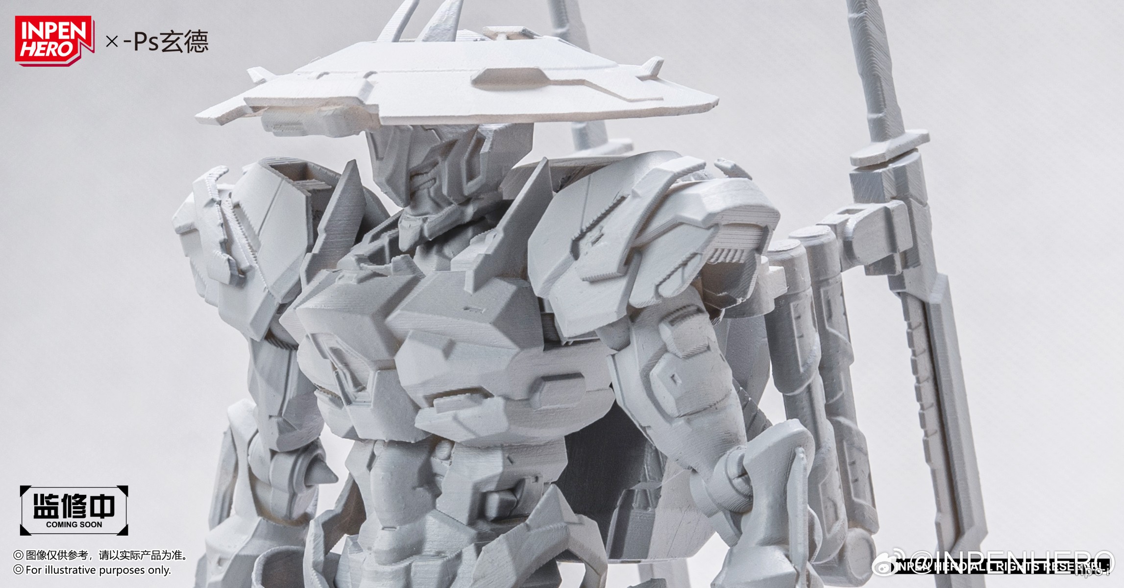 哈喽各位模友!原创模型品牌【INPEN HERO】正式来报到啦~很开心和大家见面!未来想和各位一起解锁全新的模型体验,共享玩模的快乐~ ▷今天直接上硬菜 —— 我们中小比例可动机甲系列的首作:隐匿型刺客机甲【拨月者】来啦!裙甲 + 斗笠的搭配直接拉满浪人氛围感,双持轻刀枪更是精准踩中刺客定位,又飒又能打! ▷我们将持续对其进行外观和可动上的优化。尽力打造一款造型飘逸适合上手把玩的可动成品模型。