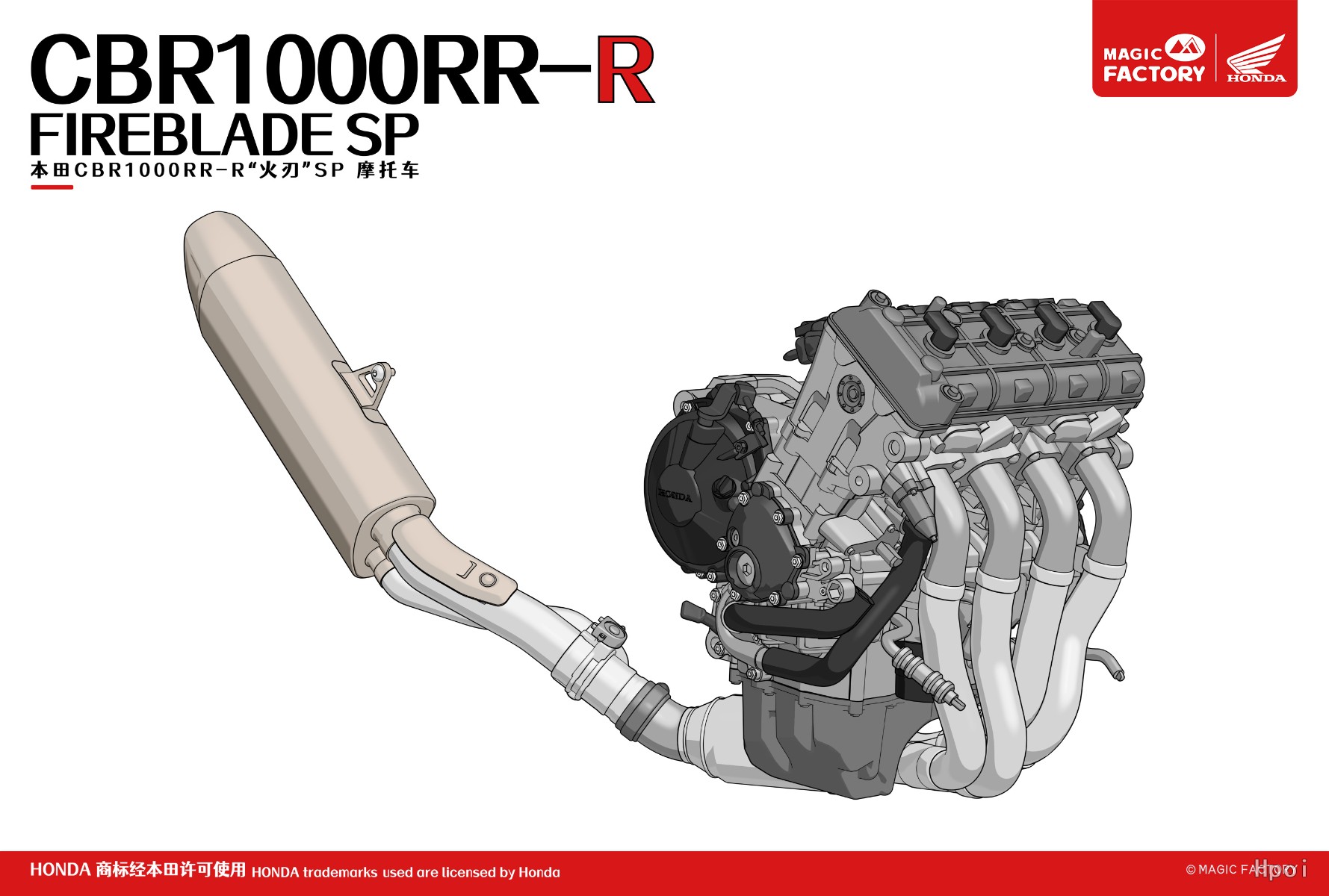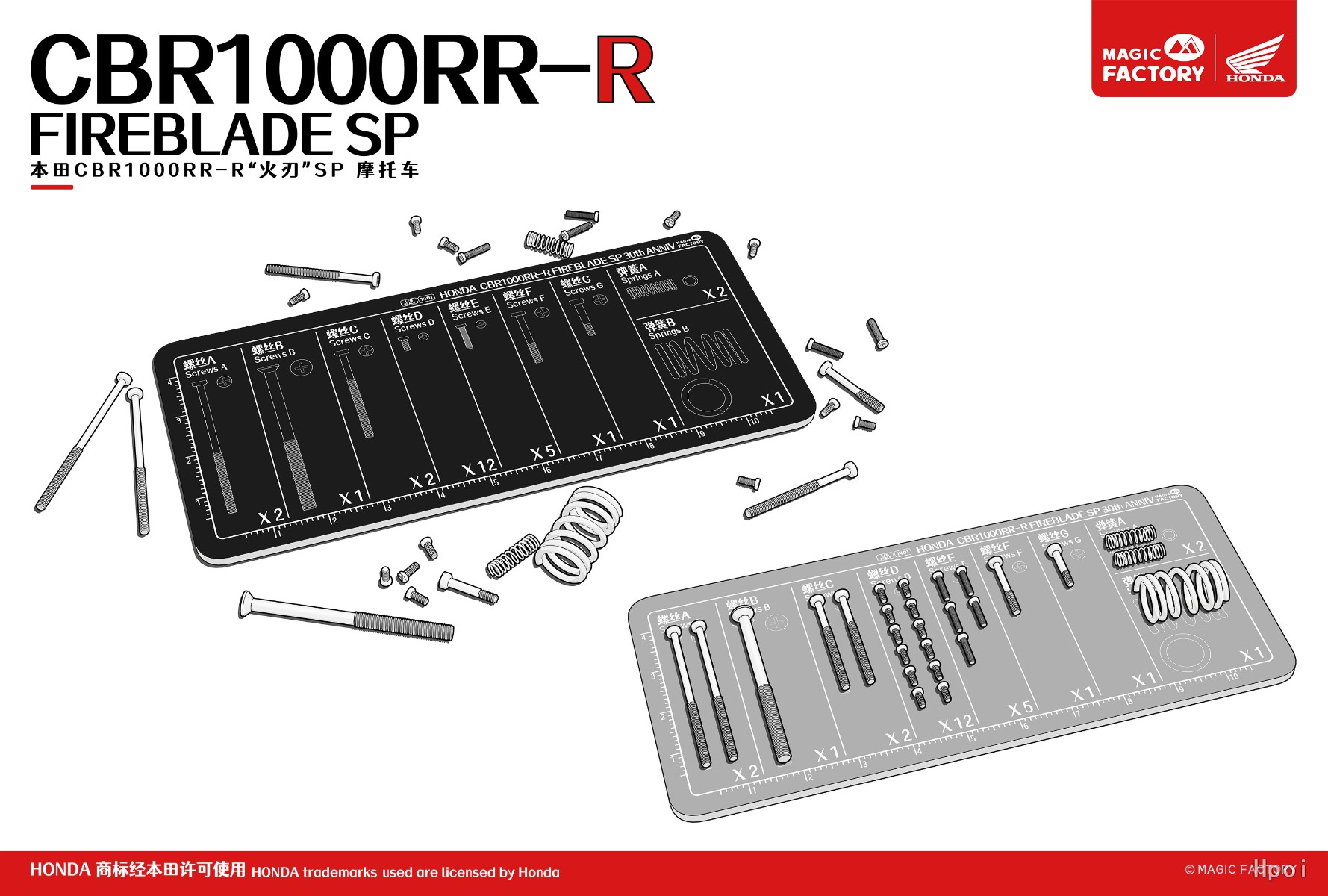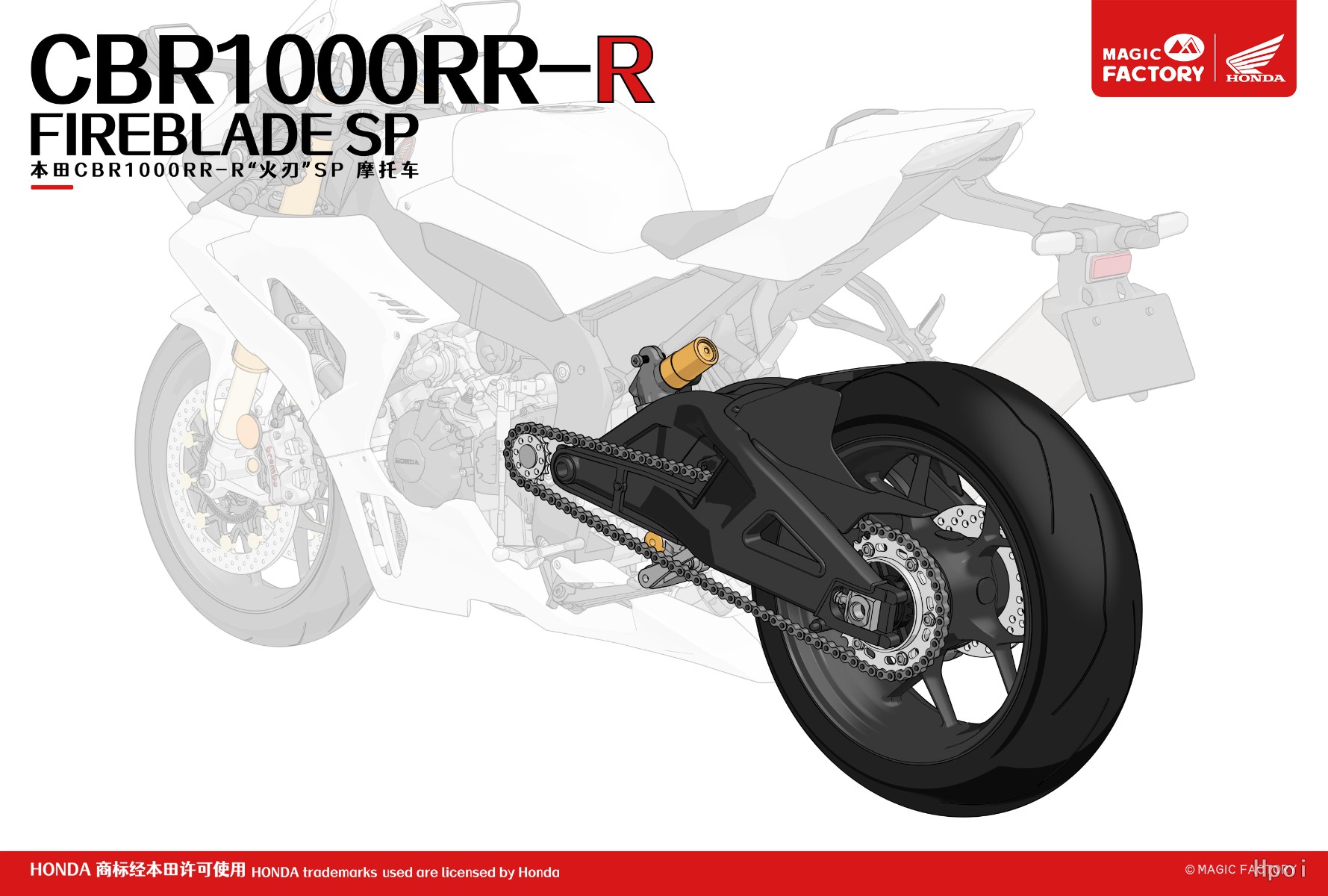 作为魔力工厂第一款1/9免胶预上色产品,我们对本田CBR1000RR-R火刃SP根据实车涂装进行了精致的预上色处理;