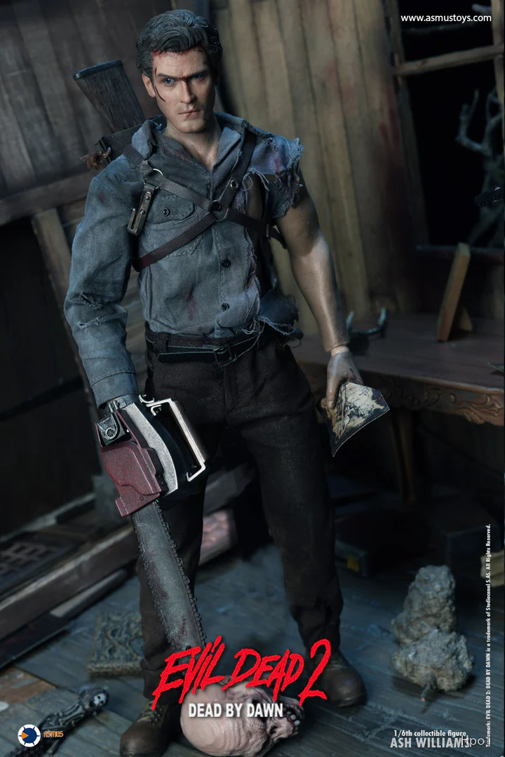 这款 《鬼玩人 2》艾许·威廉姆斯 1/6 比例人偶,高度还原了山姆·雷米(Sam Raimi)于 1987 年执导的电影《鬼玩人 2》(Evil Dead II)中主角的真实容貌。