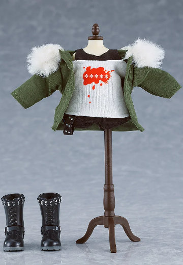「黏土娃 佐倉雙葉」的服裝套組。【商品內容】・夾克・上衣・褲子・靴子(附腳底磁鐵)※本商品不包含模型本體、假人衣架。※長時間穿著可能會有染色至素體上的情況,敬請留意。※依據不同黏土娃、服裝套組及黏土人的角色樣式,可能會有無法正常穿上的情況,敬請見諒。※根據海外產品的檢驗標準,銷售至部份海外地區的本產品部份零件不使用磁鐵款式。※「黏土娃 佐倉雙葉」包含「黏土娃 服裝套組 佐倉雙葉」的所有商品內容。