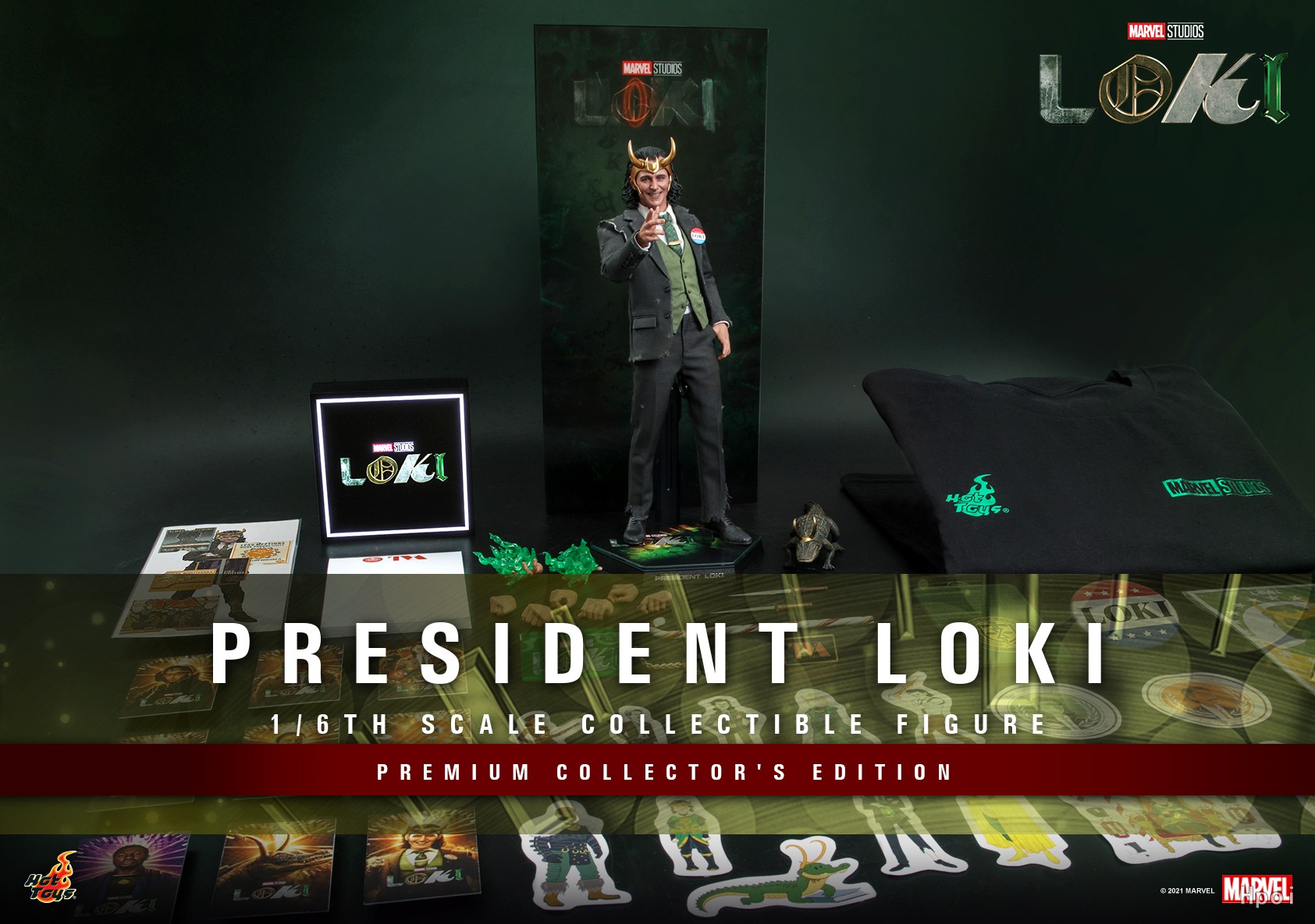 迪士尼+剧集《#洛基#》剧情承接《#复联4#》复仇者们回到2012年的纽约收集空间宝石时出现意外,洛基携空间宝石逃跑,也开启了新的平行宇宙。早前,Hot Toys特别拣选了深受漫威迷喜爱的《#洛基#》剧集中的时间变异管理局 (TVA) 制服造型及新登场的女洛基希尔维 1:6比例珍藏人偶,及洛基COSBABY后,现参照不同时间线的总统洛基造型推出1:6比例总统洛基珍藏人偶,更推出礼盒珍藏版 配置洛基精品礼盒全球1500套 中国大陆限量360套,极具收藏价值!