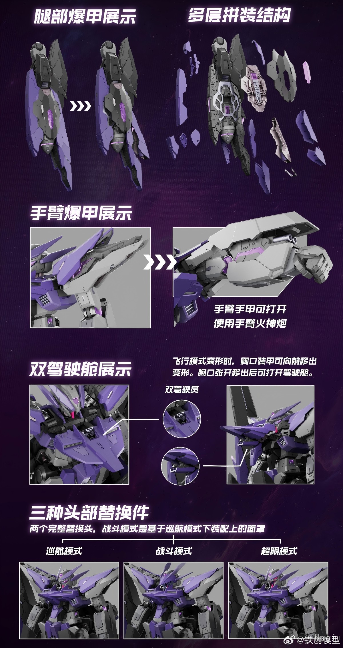 基础配置:主体+星战背包3个形态头部替换组件(包括2个完整头部、一套面罩替换件)腿部远航推进器替换组件*1量子型剪击刃I式*2量子型剪击刃II式*2浮游剪刃*12浮游剪刃万向散射支架*1旋钮式收纳地台支架*1附赠特典:多模式磁控灯组*3DIY无色透明件1套产品预订价:268元预计出货时间:2025年三季度
