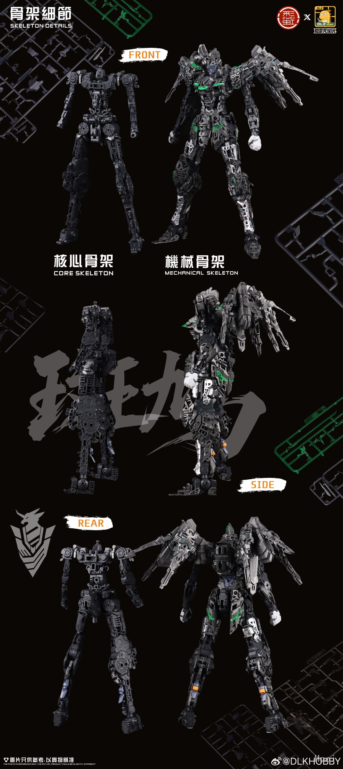 骨架:设计师非常着重于合理的结构分佈,每个拆件都为了联动和可动而细心安排,没有多余的拆件,精密的结构令到骨架非常稳重且富有份量.