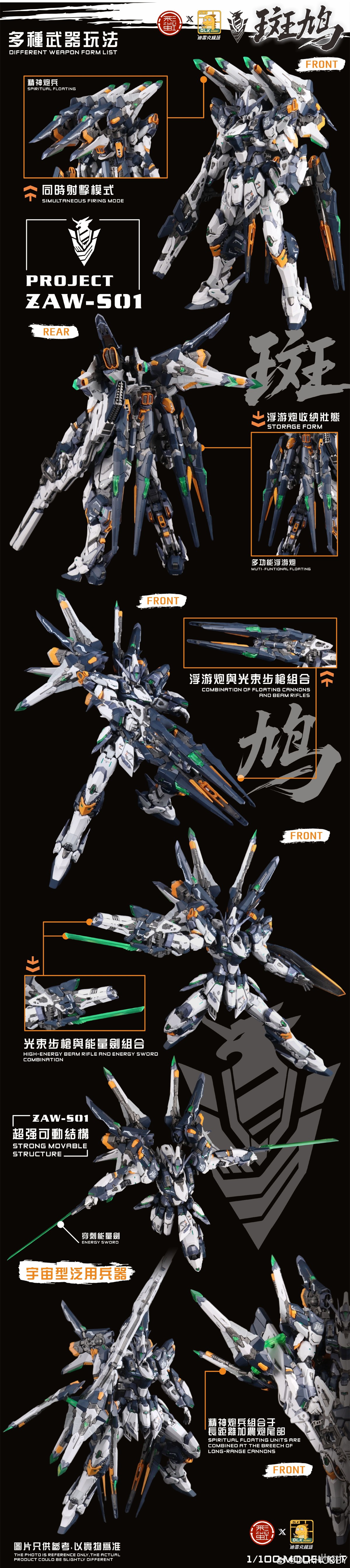 首款1/100拼装模型—-ZAW-S01斑鸠、非常荣幸邀请到彩ZWEI虹 为本次模型设计师、模型为精密结构的多层骨架、零件数约1030件(不含任何支架)本次产品经由達人MASTER DL大林 生产加工~