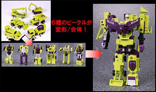 初代アニメ「戦え!超ロボット生命体トランスフォーマー」に登場するビルドロン巨人兵「デバスター」は、6種の建機がそれぞれロボットに変形し、更に合体して巨大ロボットとなる人気キャラクターです。