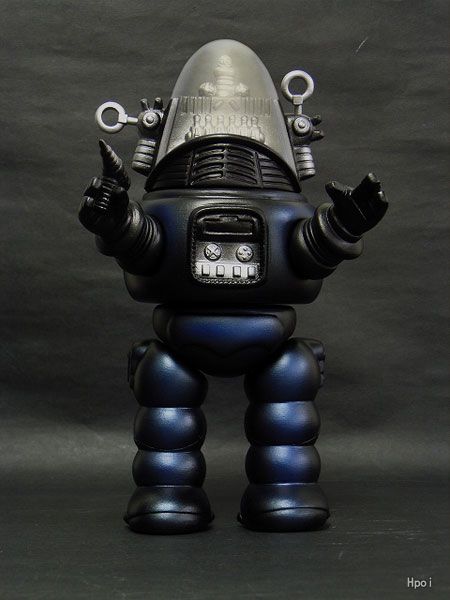 PVC製 塗装済み完成品【可動箇所】 両肩、腰、両足【パッケージ】 ウィンドウボックスSF映画の名作『禁断の惑星』に登場したロビー・ザ・ロボットのレトロアレンジソフビがロビーには欠かせない「レイガン」を持ったバージョン登場。ブラックの成型色にメタリックブルーとシルバーの塗装。レイガンは右手と一体成型。頭部フードは透明成形。