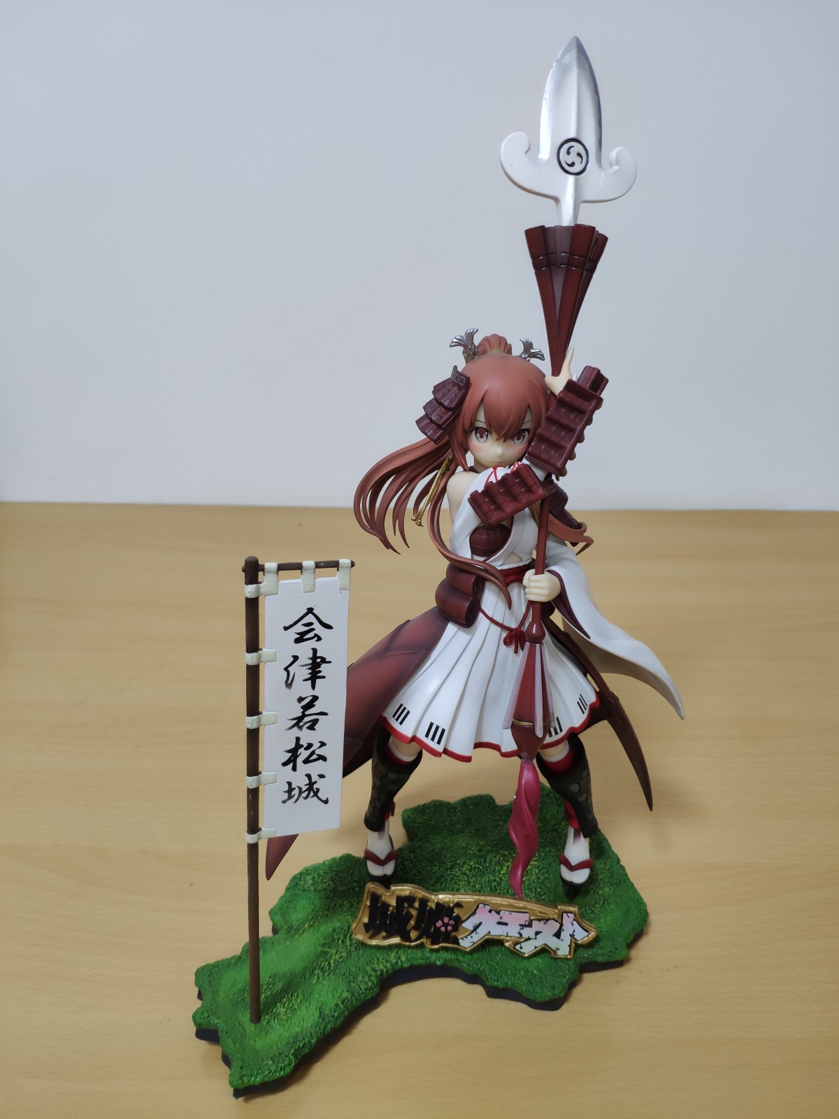 城姫クエストの会津若松城をオリジナルポーズで立体化。1/8スケールでありながら槍の先までの全高は330mmと見応えのあるボリュームになっております。また、ニュービジョントイズ社オリジナルのアプローチとして瞳パーツを別パーツにすることによりうるんだ瞳の表現に挑戦してみました。台座ベースは若松城のある福島県の形をイメージしております。
