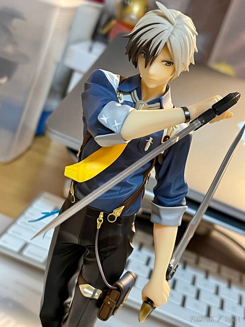 双剣を構え刃の先に対峙する相手を見据えるような戦闘前の緊迫感ある一瞬を立体化しました。