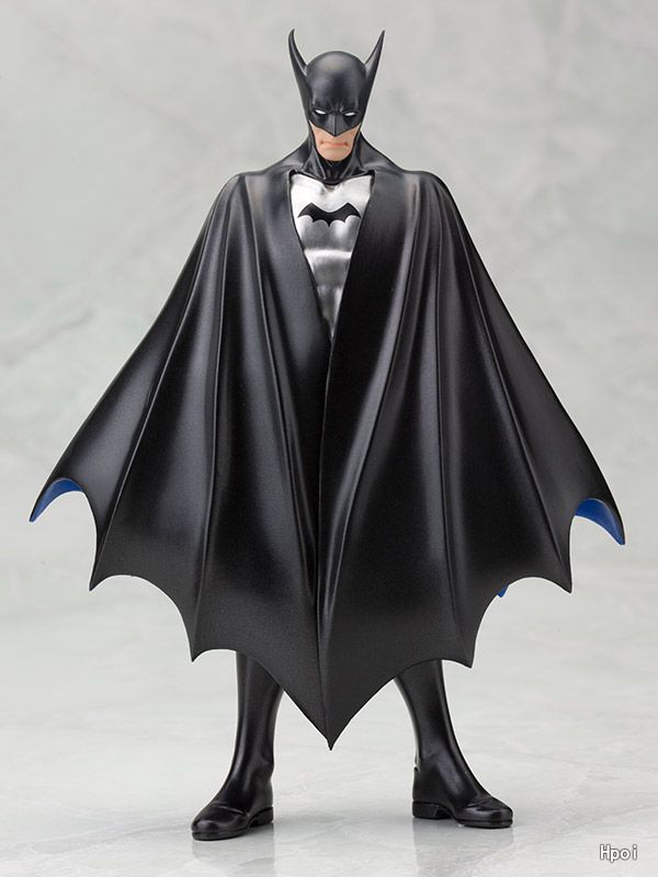稀代のアーティスト、ボブ・ケインによって生み出され、今も受け継がれるバットマンの要素でありながら、ボブケイン版独特のデザインセンスが光る長い耳や細い体躯、そして蝙蝠を模した漆黒のケープのデザインを、ディテールや造形は現代の水準にアップグレード、メタリックなペイント表現で再現しました。