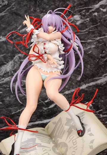 迫力満点のボディや胸パーツの差し替え、拘り抜いた魔導書ベースなどの見どころをそのままに、淡い色合いだった髪や下着の色をお馴染みの原作カラーにチェンジ。さらに各部へ追加した透け塗装で、よりボリュームを感じられる仕上がりとなった。