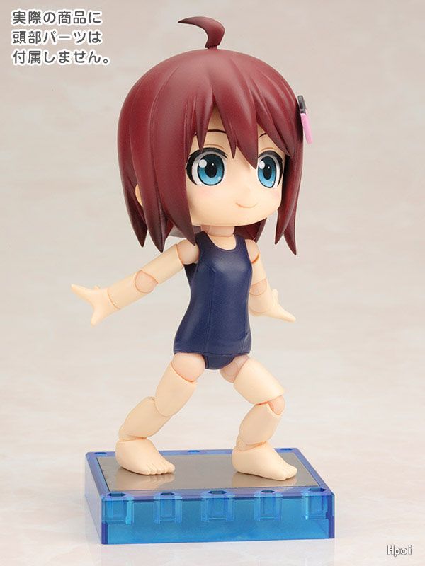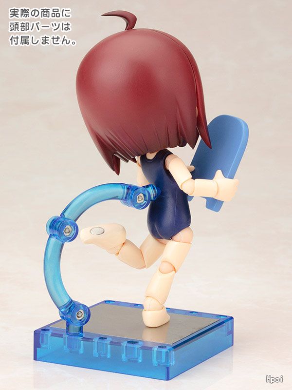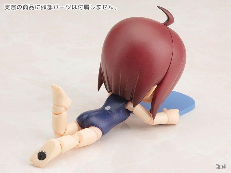 第1弾はキャラクター達を着せかえて楽しい「スクール水着ボディ」。付属の「ビート板」「クリアーブルーの台座」で遊ぶも良し。着せかえ用の素体として小さなサイズのドール服で着飾るも良し。製品に頭部は付属しないので、お手持ちの「キューポッシュ」で遊んでね。