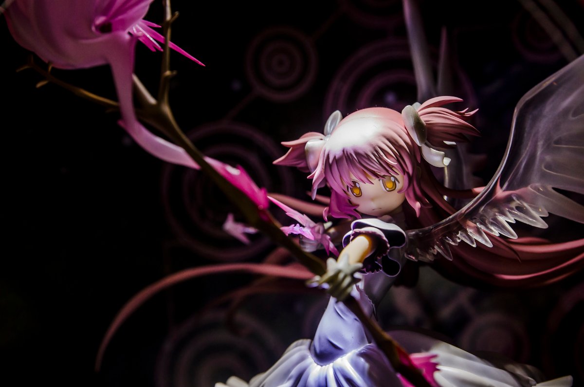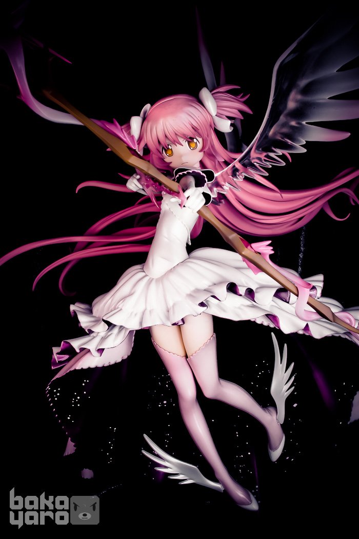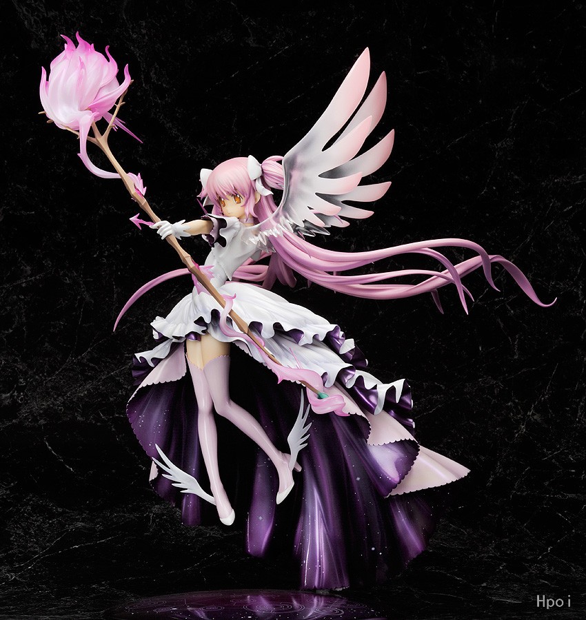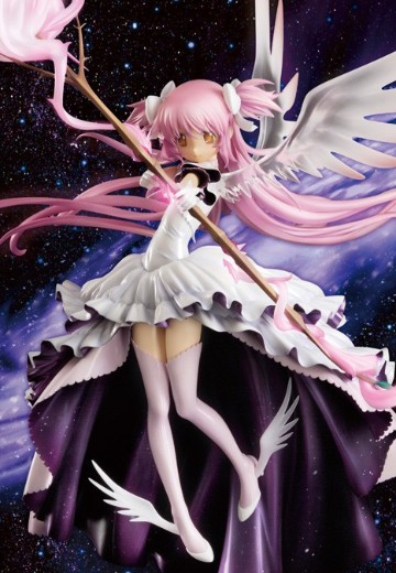 人氣動畫《魔法少女小圓》最後一集中,主角「小圓」實現了自己的願望,成為了魔法少女「最終型態鹿目圓」化身模型決定再次販售!飄逸的長發、籠罩深邃宇宙的洋裝、透徹的翅膀、花蕾般的魔法弓,皆已大膽且細膩地重現令人印象深刻地姿態。底座上有一個魔法陣,當射箭時會出現在宇宙空間般的設計。