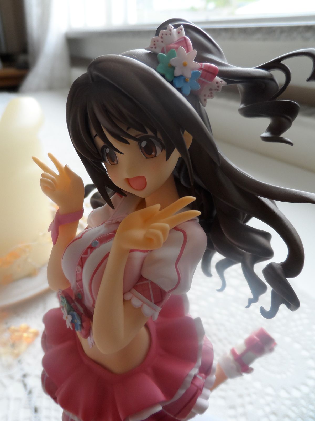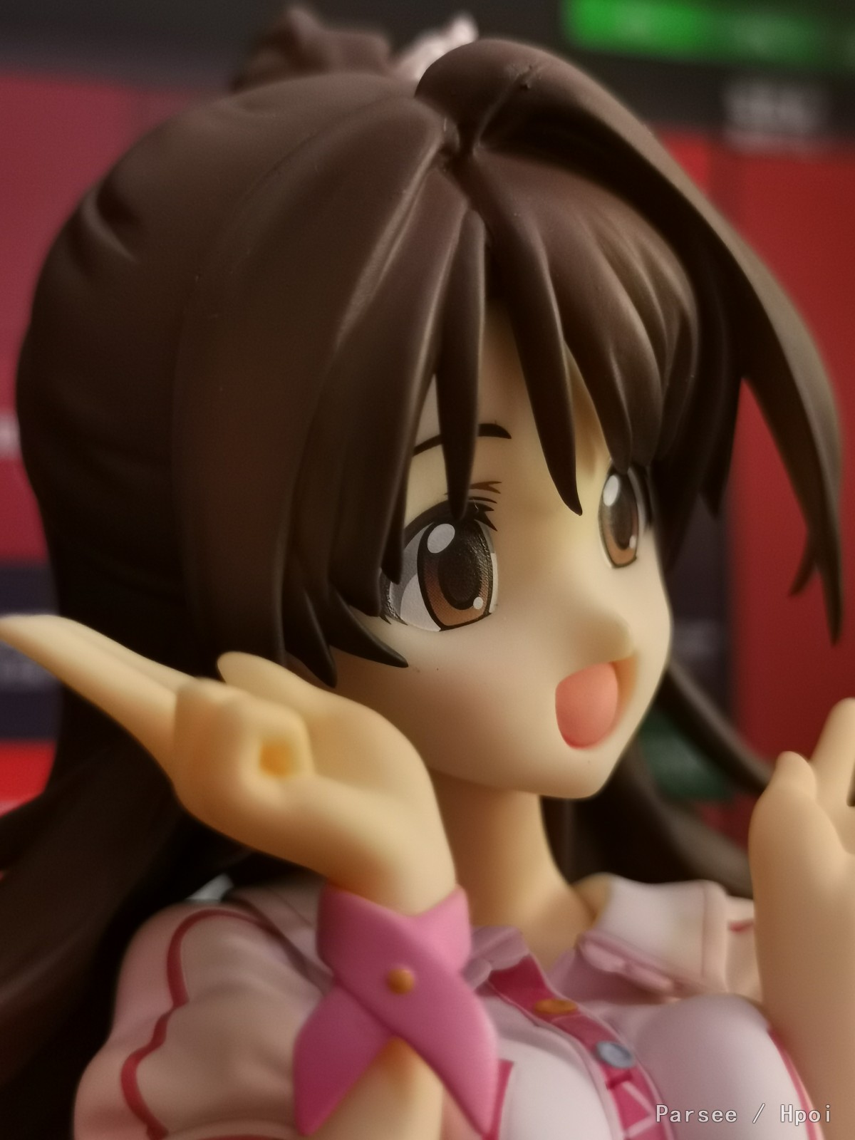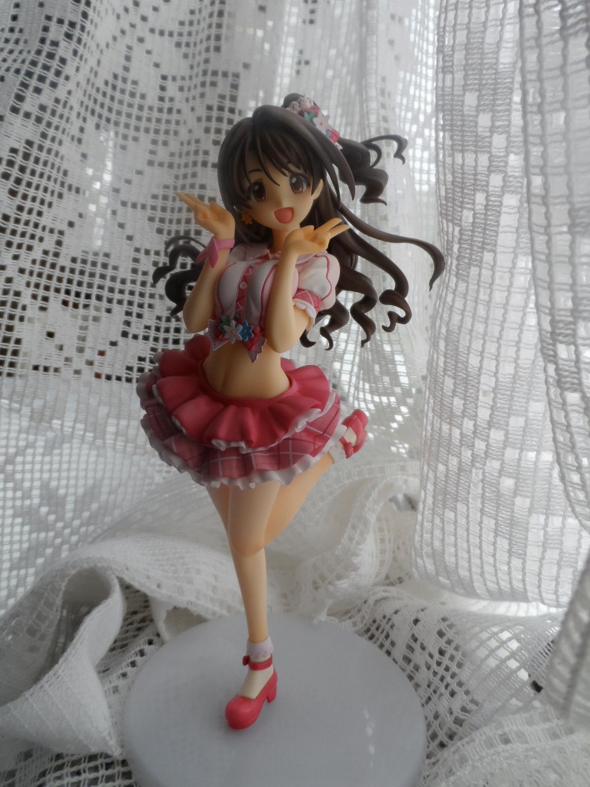 いつも愛らしく、明るい笑顔の卯月らしさをそのままに、ピンク色を基調とした可愛らしいステージ衣装は、細部までこだわって再現しました。