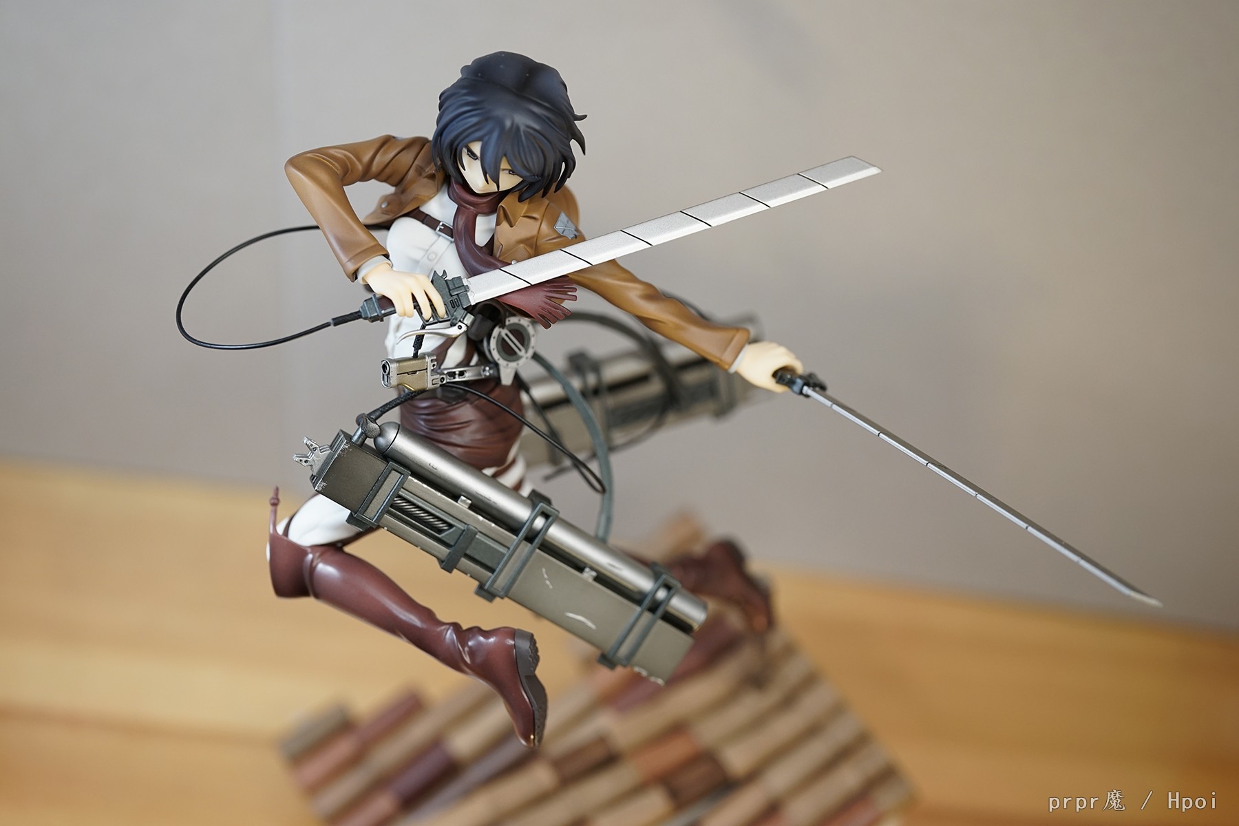 出自超人氣電視動畫《進擊的巨人》,與主角艾蓮是青梅竹馬的「米卡莎‧阿卡曼」化身為1/8比例模型登場。以電視動畫藍光DVD及DVD第二集封面插圖為基底,重現充滿躍動感的米卡莎。立體機動裝置的構造及服裝的質感等等,都能從各種角度欣賞比例模型獨有的特色。