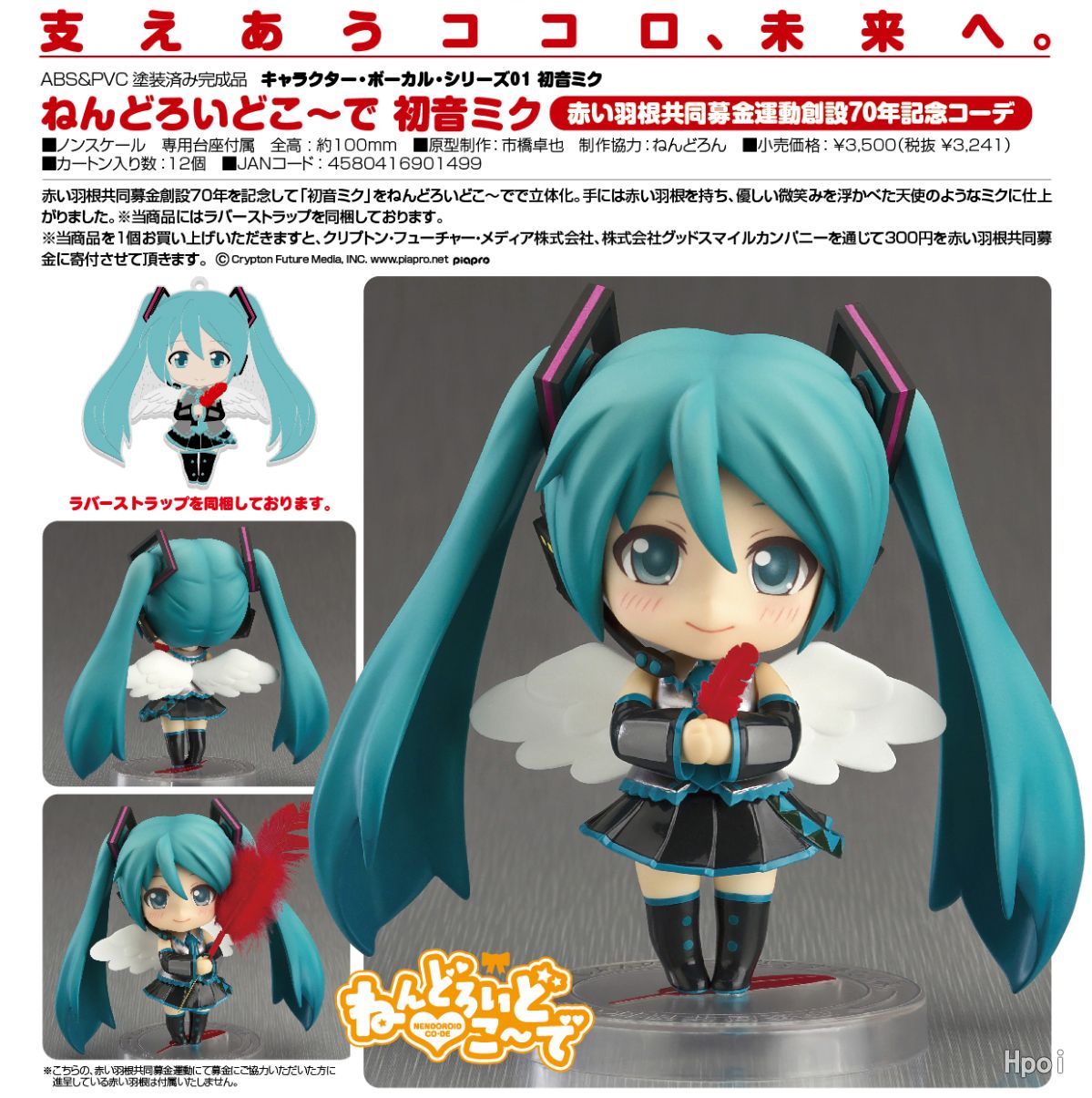 中文名称:粘土人搭配 VOCALOID 初音未来 红羽毛共同募金运动 创设70年 记念コーデ