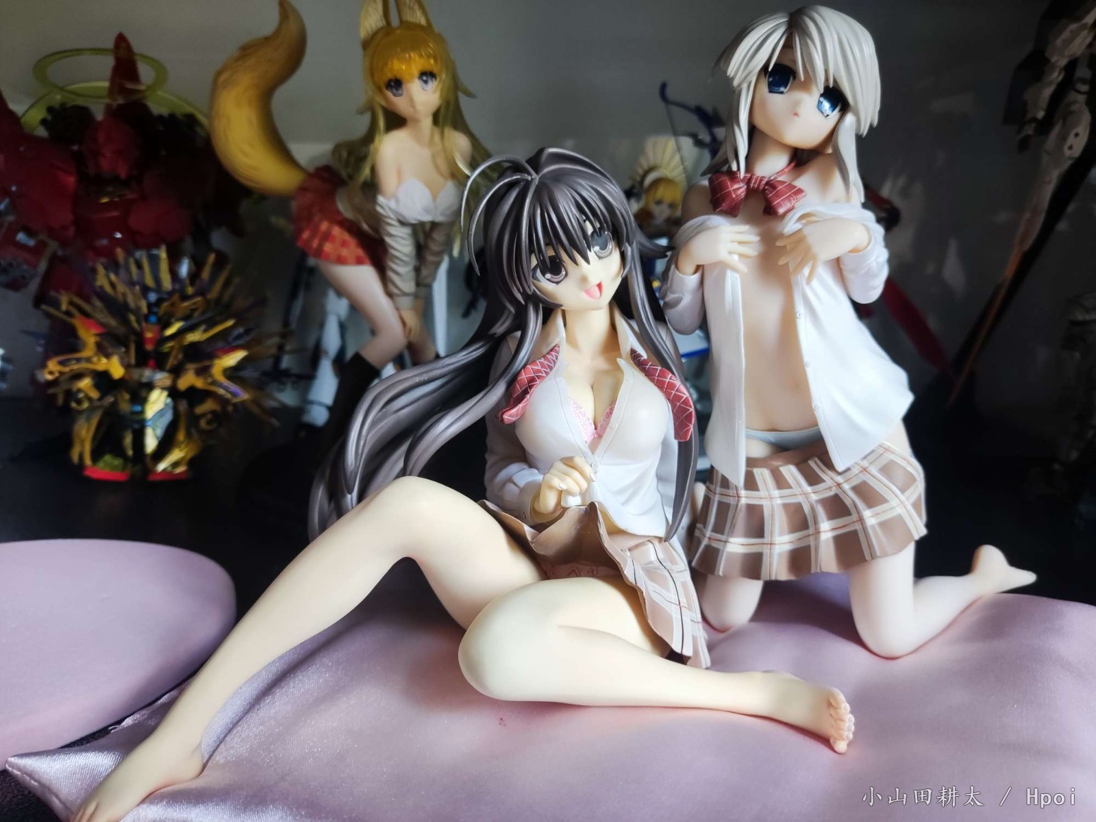 また、下着の存在感をアピールするためにパーツ分割を考慮し、まるで下着が別パーツのように見える造型に仕上げ、シャツはクリア素材に塗装を施す事により、肌や下着を透けさせ、その存在感を更に主張させました。あえて靴やソックスは造型せず、裸足フェチにもたまらないシチュエーションになっています。