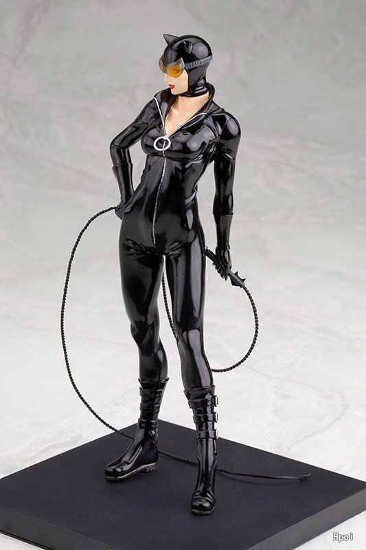 そんな彼女のコスチュームをNEW52デザインで完全再現。その黒の光沢が眩しいボディースーツの質感に加え、付属のゴーグルには透明素材を使い再現性を高めました。また、特徴的な武器である鞭は、柄に付けられたお茶目な猫型の飾りも詳細に彫刻。鞭本体はゴム素材を採用することで、鞭本来のしなやかな表情をお楽しみいただけます。シリーズ共通仕様のスクエア台座には、フィギュアの足裏のマグネットで任意の位置で固定が可能です。本商品は、単体での展示は勿論、発売中のARTFX+ バットマン NEW52版と組み合わせて展示することで、ジャスティス・リーグとは一味違うダークな世界観でディスプレイが楽しめます。