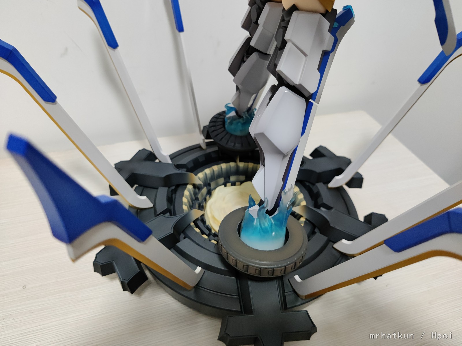 ゲーム内でのステージをイメージした台座の中心部はLED内蔵により発光可能。臨場感のあるディスプレイをお楽しみ頂けます。