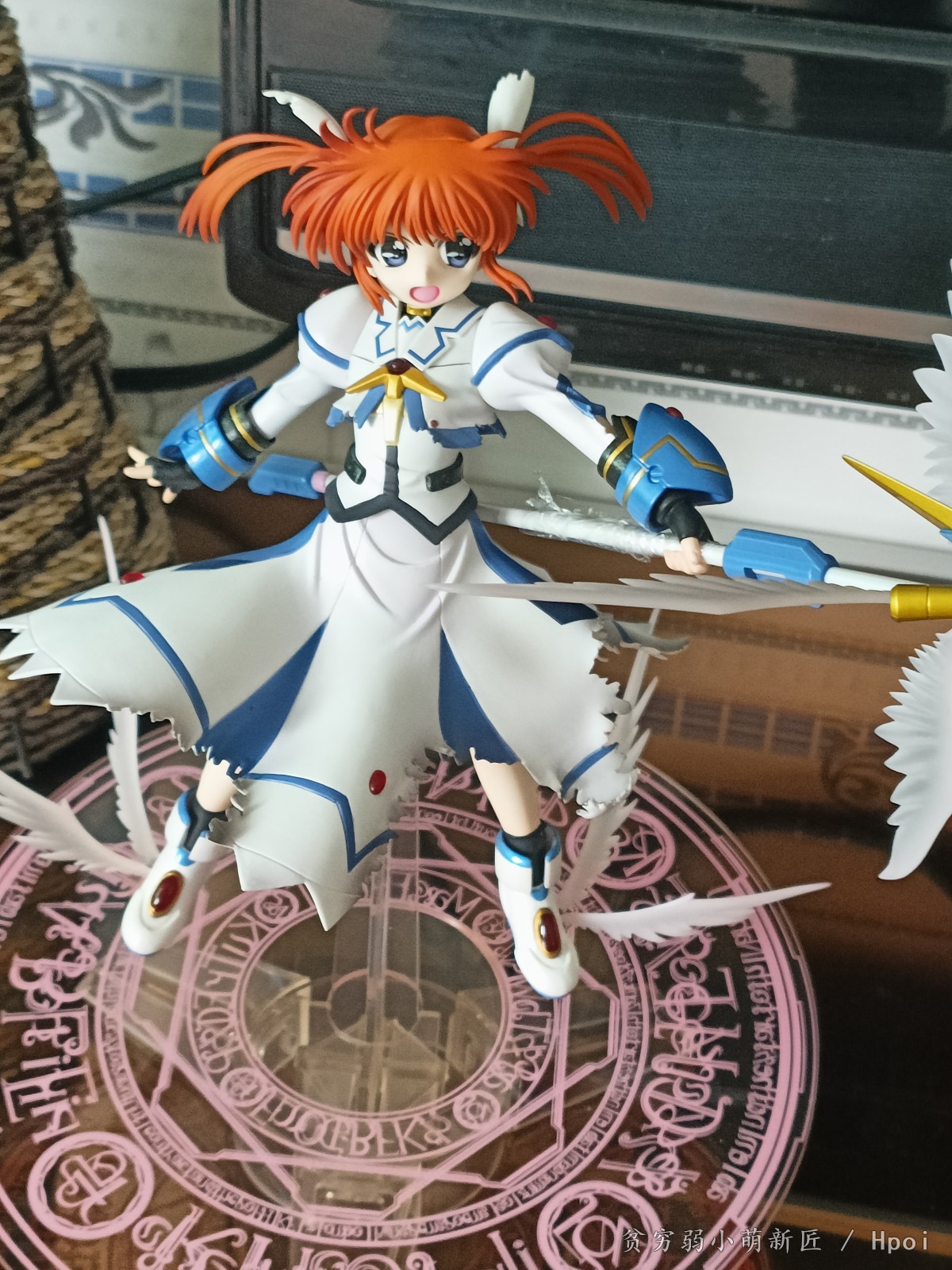 バリアジャケットの各部ジェネレーターとレイジングハートの赤い宝石部分や、各部フィン(光の羽)にはクリア素材を使用し、その他の各パーツも塗装の使い分けにて硬質感や軟性を表現した、フィギュア単体としても密度感溢れる商品です。