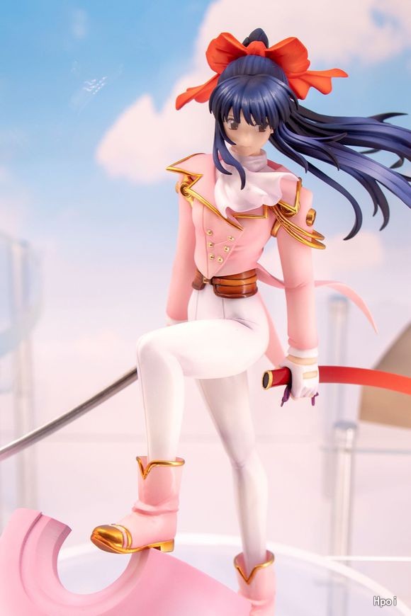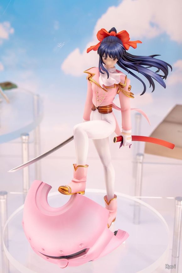 松原秀典氏のイラストを元に、花組戦闘服をまとい、愛刀「霊剣荒鷹」を片手に光武の上に立つ凛々しくも可憐なさくらを表現。