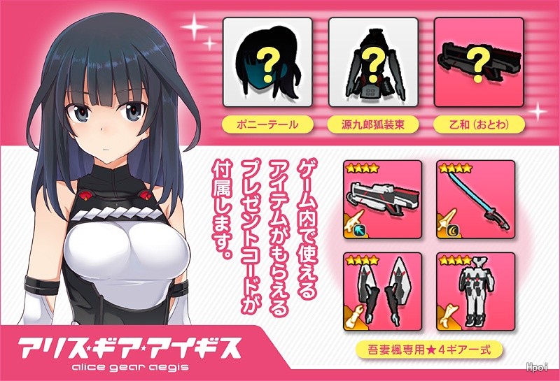 「メガミデバイス」コラボレーション第1弾は「アリス・ギア・アイギス」のメインキャラクターの1人である「吾妻 楓」です。