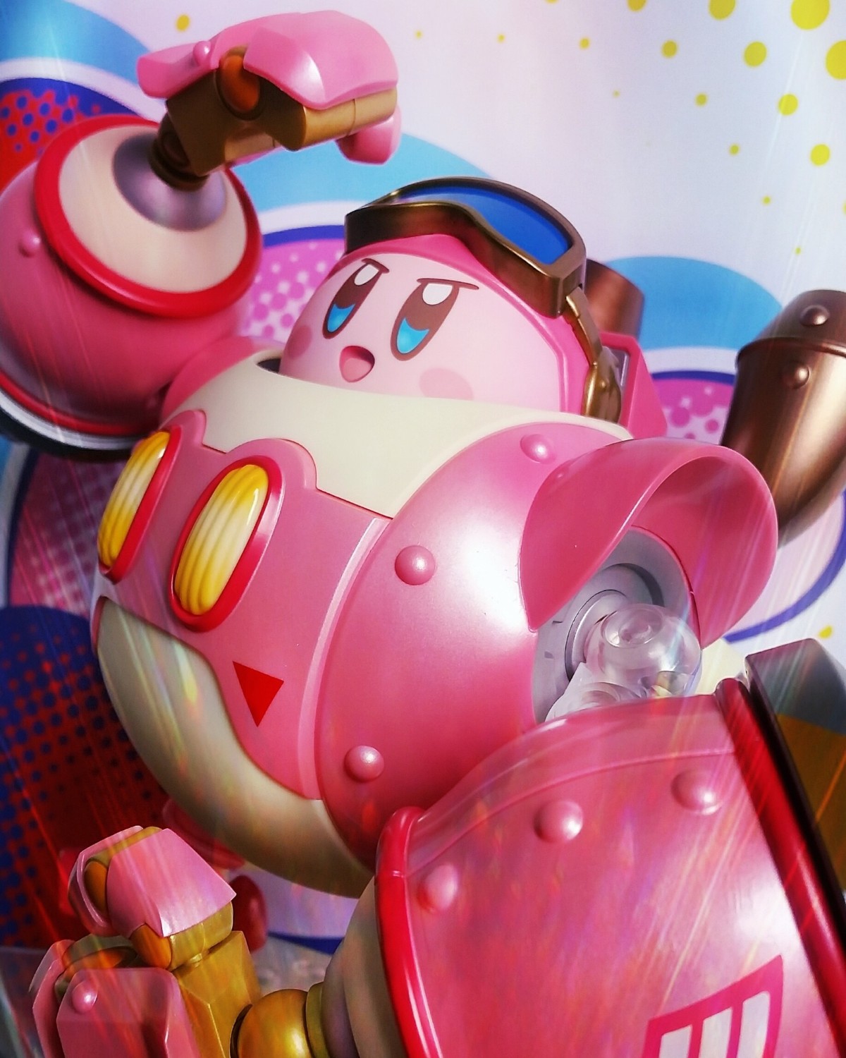 出自《星之卡比 機器人星球》,卡比可靠的夥伴「機械裝甲」以高約15cm的巨大尺寸登場!和遊戲中相同,能讓「黏土人 卡比」直接乘坐上去。各關節可動,能擺出動態感十足的姿勢。此外,內附的「黏土人 卡比」更重現了機器人星球主視覺圖中的表情,還有卡比用的「頭盔」!盡情賞玩「星之卡比」的世界吧!