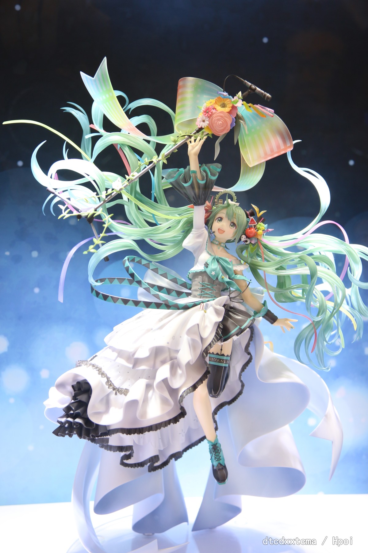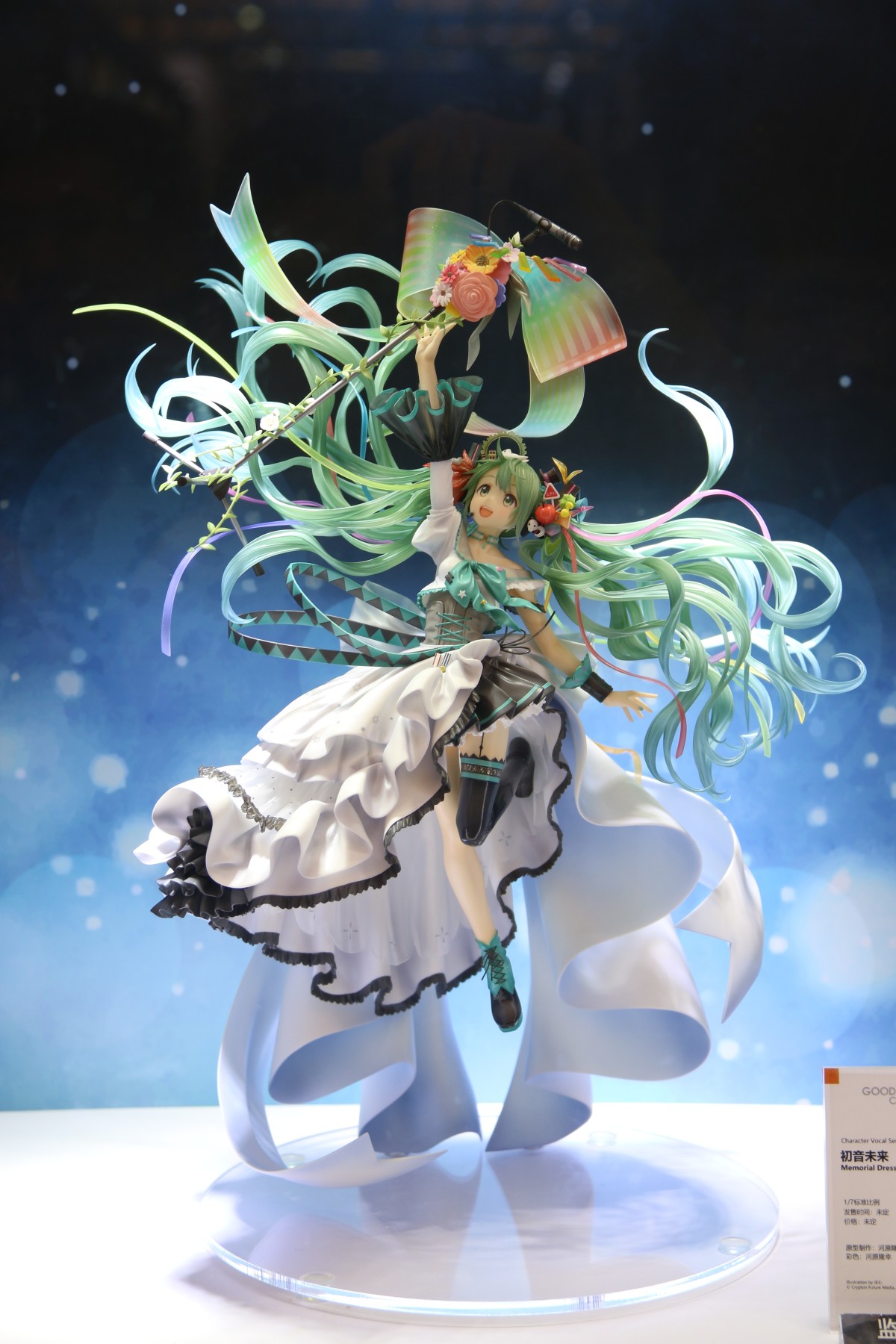 將初音未來10周年紀念模型企劃所舉辦的《初音未來繪圖比賽》中,獲得優勝的作品「飛得更高!」(作者:ぽむ),由原型師・河原隆幸製成模型。將蘊含“至今為止與從今以後”的「初音未來」特別插圖,細心製成講究的模型,完整呈現插圖氛圍。初音身上的洋裝與髮飾、往上伸的右手前方那麥克風架等,各處造型讓人聯想至今為止初音唱過的眾多樂曲。飄逸的髮絲部分採用透明材質製作,兼具分量與漂浮感,色澤美妙。如同作品名稱「飛得更高!」,初音臉上露出滿溢希望的表情,魅力十足。本款模型挑戰了角色模型的極限,在眾多「初音未來」的模型之中,說是傑作也不為過。敬請趁這機會迎接她回家細細鑑賞。