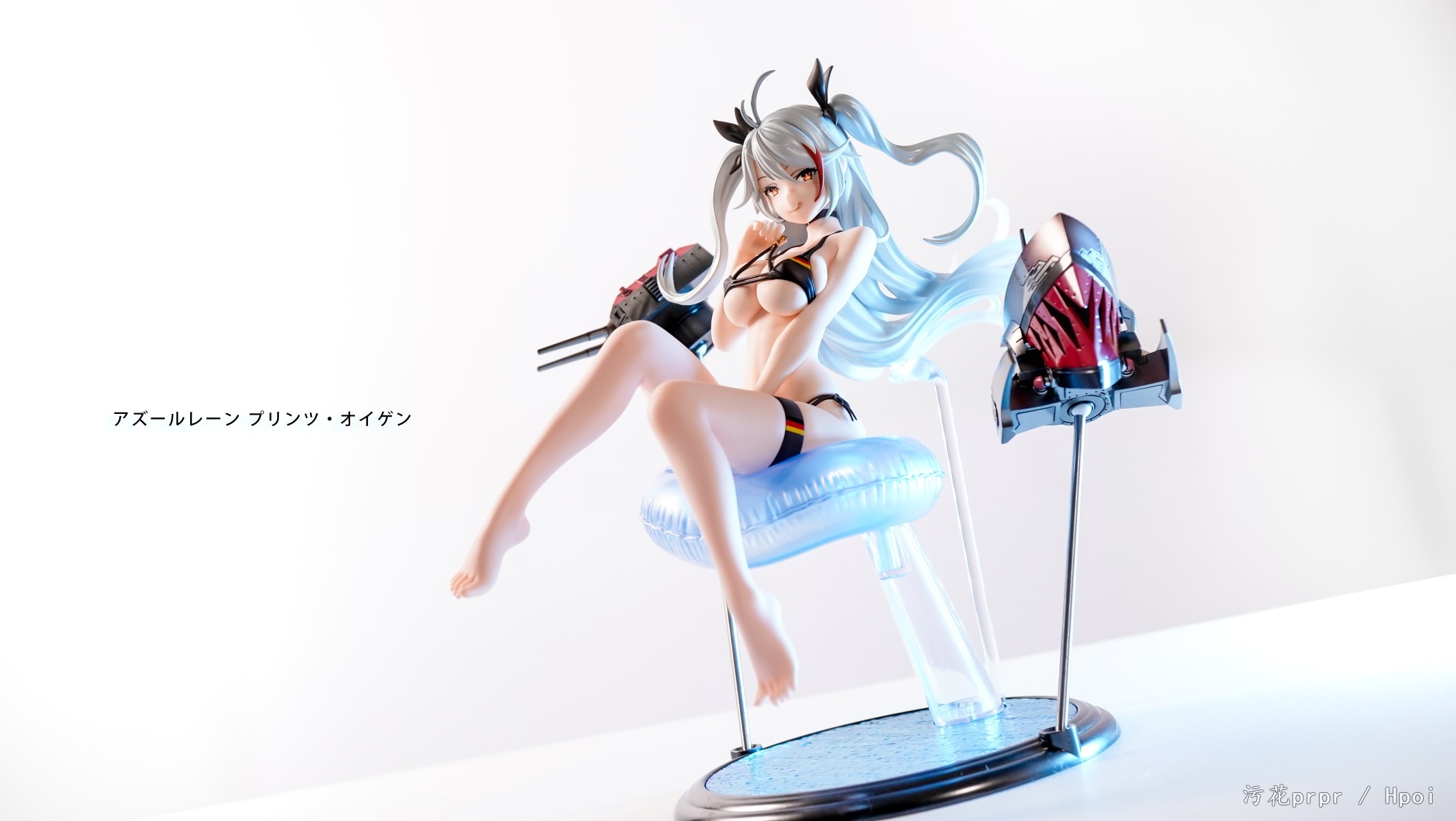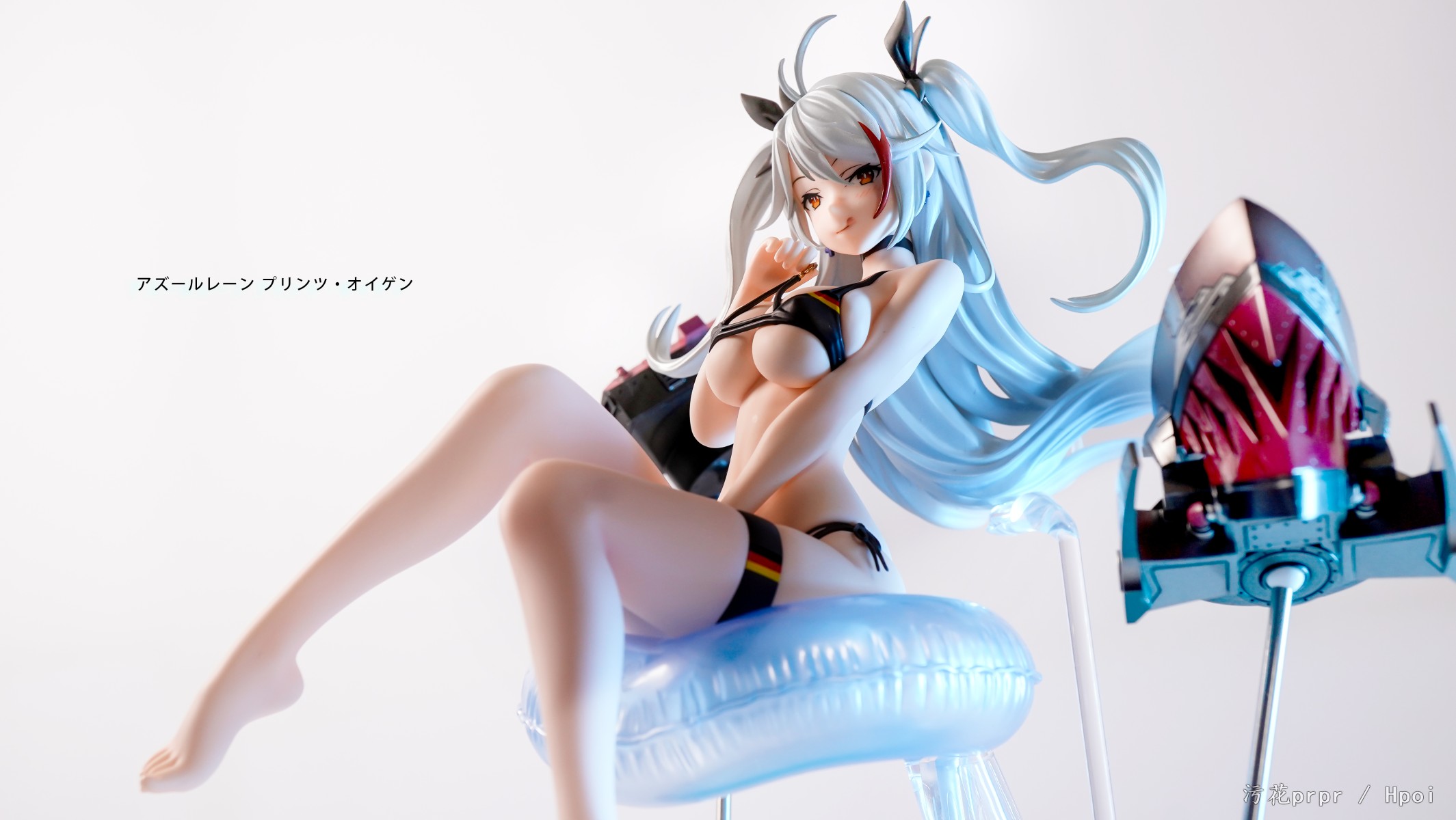 以透明零件打造出具透明感的漂亮银发,有如鲨鱼嘴般充满魄力的异形舰装等,我们将这些只属于她的特征都打造成充满看点的造形。大大的游泳圈同样值得注目。。颈部配备了H规格颈部关节,头部可动的实现能让您体会到动作的微妙变化所带来的乐趣。