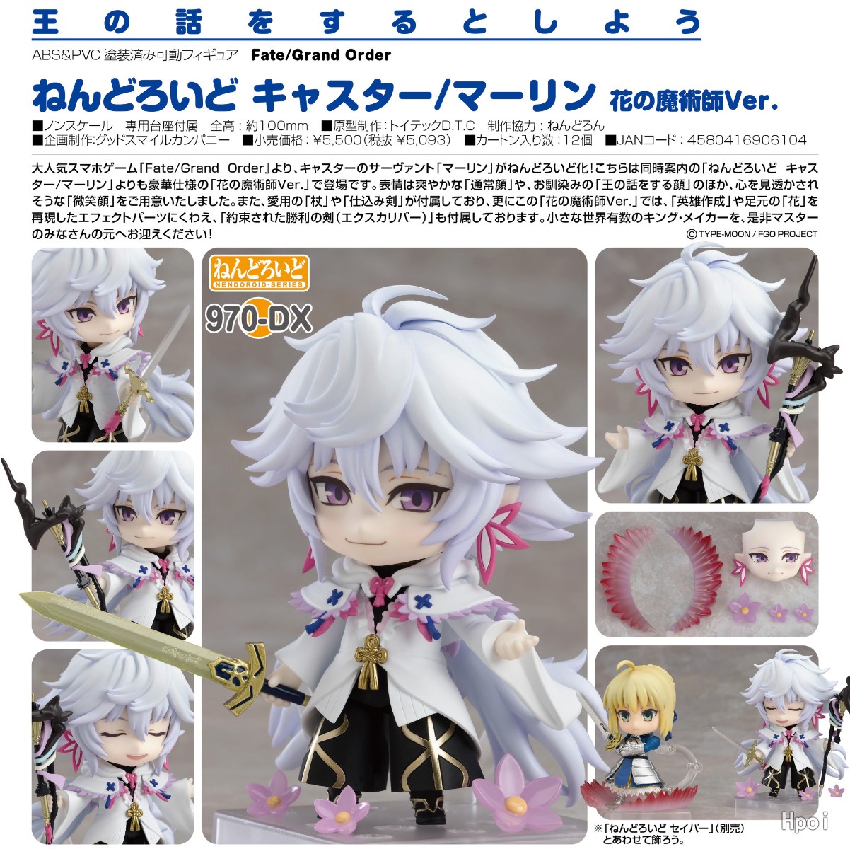 出自超人氣手遊《Fate/Grand Order》,Caster職階的從者「梅林」的黏土人決定再次販售!這款「花之魔術師Ver.」比同時開放預購的「黏土人 Caster/梅林」,造型設計更加豪華。表情零件有附爽朗的「普通臉」、大家熟悉的「談論王時」的臉,以及彷彿被看透內心的「微笑臉」。配件則有附梅林愛用的「法杖」與「暗劍」。此外,這款「花之魔術師Ver.」除了有附「英雄作成」與腳邊的「花朵」特效零件,還有附「誓約勝利之劍(Excalibur)」。敬請迎接這個世界數一數二的小巧強者到各位御主的身邊吧!