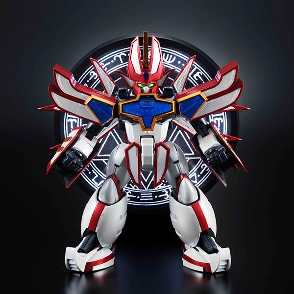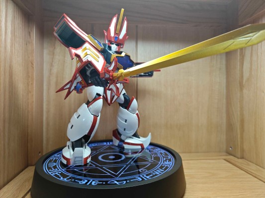■魔法陣台座: 大滝進矢氏(スーパーグランゾート役)の台詞とSEをTV放送当時と同じ音響スタッフ協力の下 新規収録!台詞・SEと連動して魔法陣が全5色に発光!またスタンドパーツを使用すると、平置きだけでなく立てた状態でディスプレイが可能。作中の召喚イメージを再現することができます。