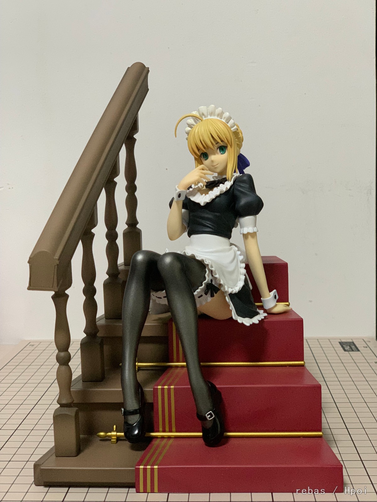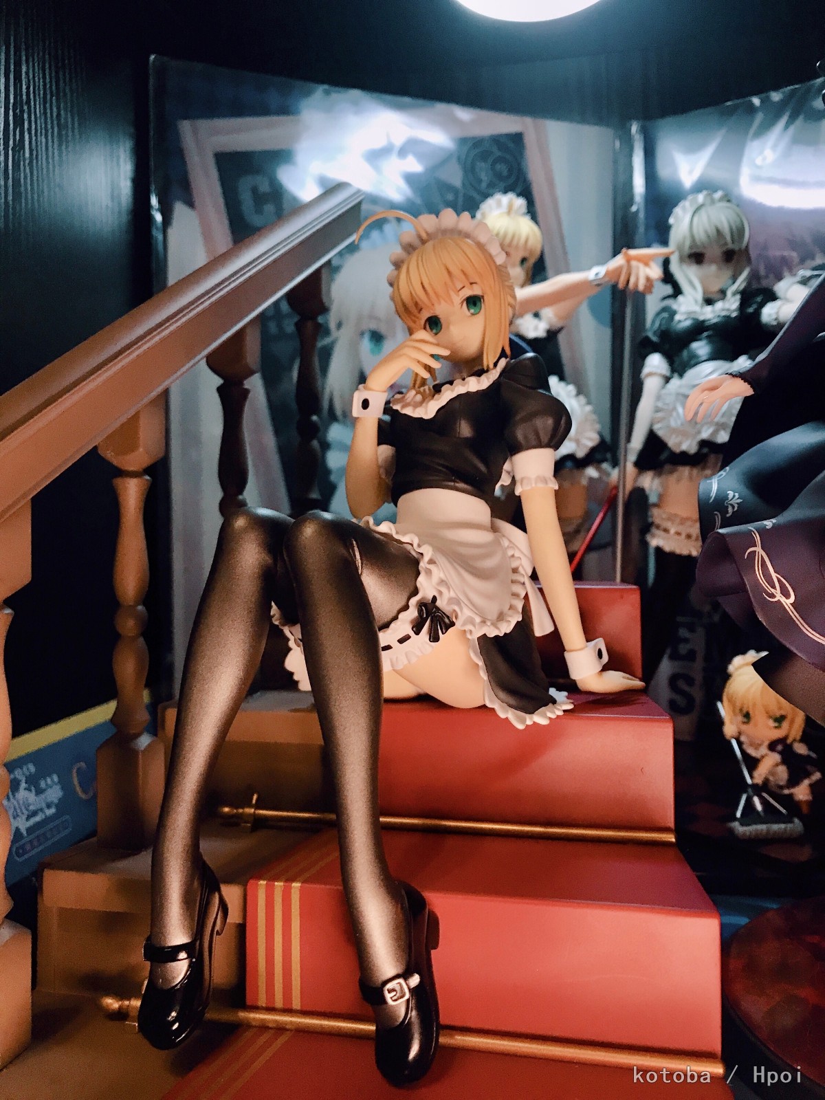 メイド服姿が可愛い「セイバー」だけでなく、イメージイラストでセイバーが座っております「階段」も作成し、イラストを切り取ったヴィネット風のスタイルにて商品化を行います。