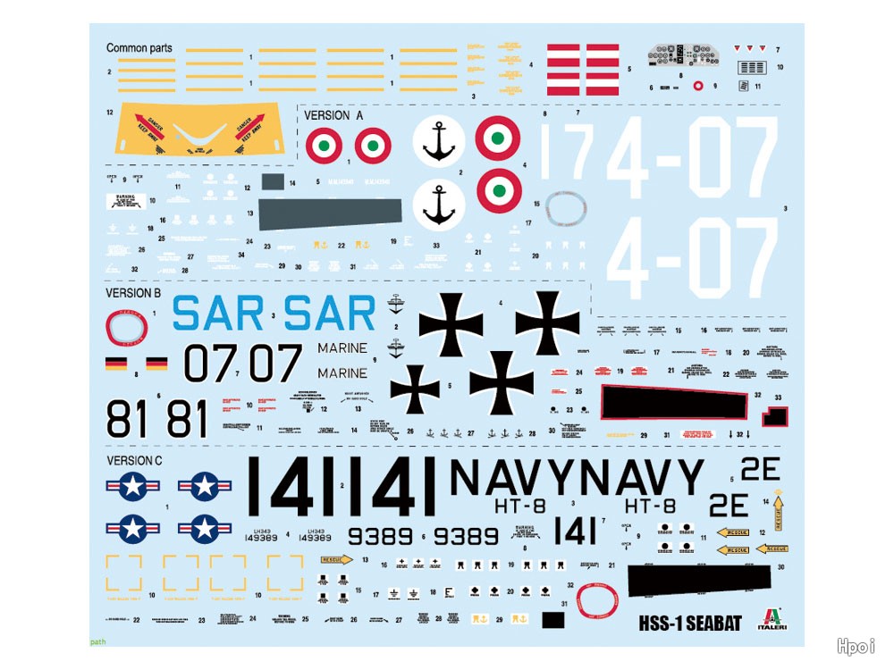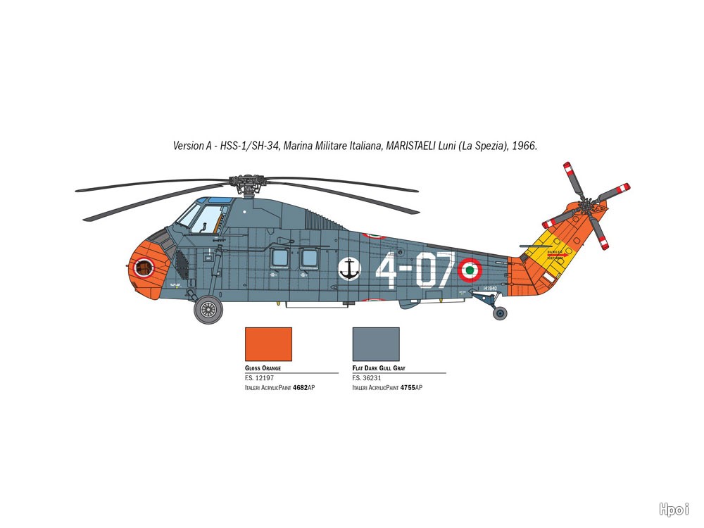 シコルスキー社が開発しベストセラー機となったS-58の対潜哨戒機型「HSS-1」をモデル化。機種に星形エンジンを搭載し大きなキャビンスペースを持つ独特の機体形状を実機に忠実に再現。デカールは米軍・ドイツ軍・イタリア軍の3種類。全長240mm。