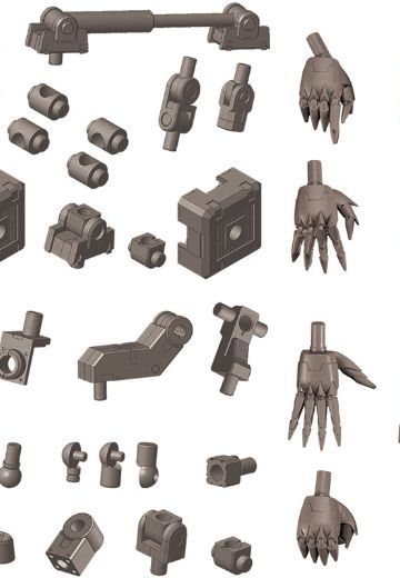 プラモデル 【セット内容一覧】 伸縮シリンダー×3 シリンダーブラケット(3mm軸)×3 シリンダーブラケット(3mm穴)×3 キューブジョイント×3 ユニバーサルジョイント×6 スモールジョイント×6 HIPS製ジョイントキャップA(3.0mm)×32 HIPS製ジョイントキャップB(丸型3.0mm)×8 HIPS製ジョイントキャップC(3.2mm)×16 ボールジョイント(大)×9 ボールジョイント(小)×9 マイクロジョイント×6 T字ジョイント×3 L字ジョイント(凸)×3 L字ジョイント(凹)×6 スペーサー×6 シンプルジョイント×3 マウントユニット(大)×3 マウントユニット(小)×6 握り拳(左右) 武器持ち手2(左右) 平手2(左右) 平手3(左右) 5.0mm径ボールジョイントアタッチメント×8M.S.Gメカサプライシリーズとハンドユニットを、成型色をガンメタに変更したセットアイテムになります。 特にヘキサギアシリーズに合わせやすいよう成型色を調整しており、無塗装でも組み換えの幅がさらに広がります。 本アソートは「メカサプライ05 ジョイントセットA」「メカサプライ06 ジョイントセットB」「ハンドユニット シャープハンド2」のセットになります。