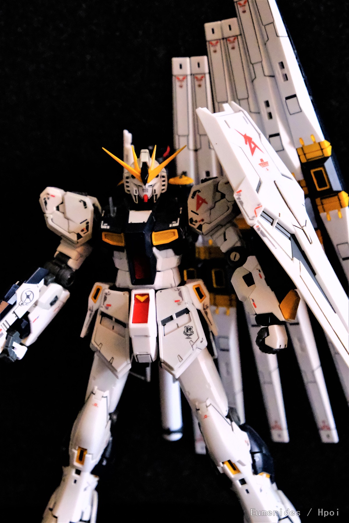 ■νガンダムの特徴的なカラーリングは成形色で再現。白い本体には薄いグレーの成形色を3色使用し、情報の密度を上げている。