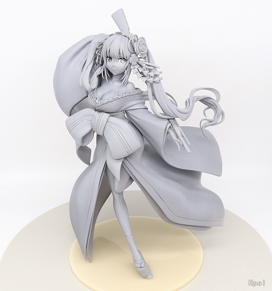 来自《约会大作战》,身穿绚烂华丽花魁服装的「时崎狂三」登场。以黑色和红色为基础色的和服厚重感十足,在水流和红叶图案加入了狂三最喜欢的猫咪图案,设计得非常可爱。从大胆展开的领子和下摆中露出的肩膀,胸部和大腿都充满魅力地强调出来,略微染上脸颊的表情散发出神秘的气息。不仅是花魁装扮,后面的手里拿着长枪,摇摆的头发和动感十足的动作等,使用大量空间进行了制作。请务必将这位以和风气质散发出魅力的狂三迎至手边赏玩。