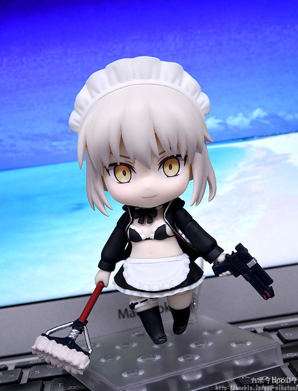 出自超人气手机游戏《Fate/Grand Order》,Rider从者「阿尔托莉亚·潘德拉刚[Alter]」化身为黏土人登场!可替换的表情零件有充满自信的「普通脸」、双颊泛红的「害羞脸」,以及在官网刊载的漫画《从漫画了解FGO!》中出现的「RIYO脸」与「专用前发零件」。配件附有手枪与来福枪样式的「水枪」、家政妇的必需品「拖把」,还有喜欢到忘记吃了多少支的「冰棒」。敬请将略微危险的夏日家政妇迎接至各位御主的身边!