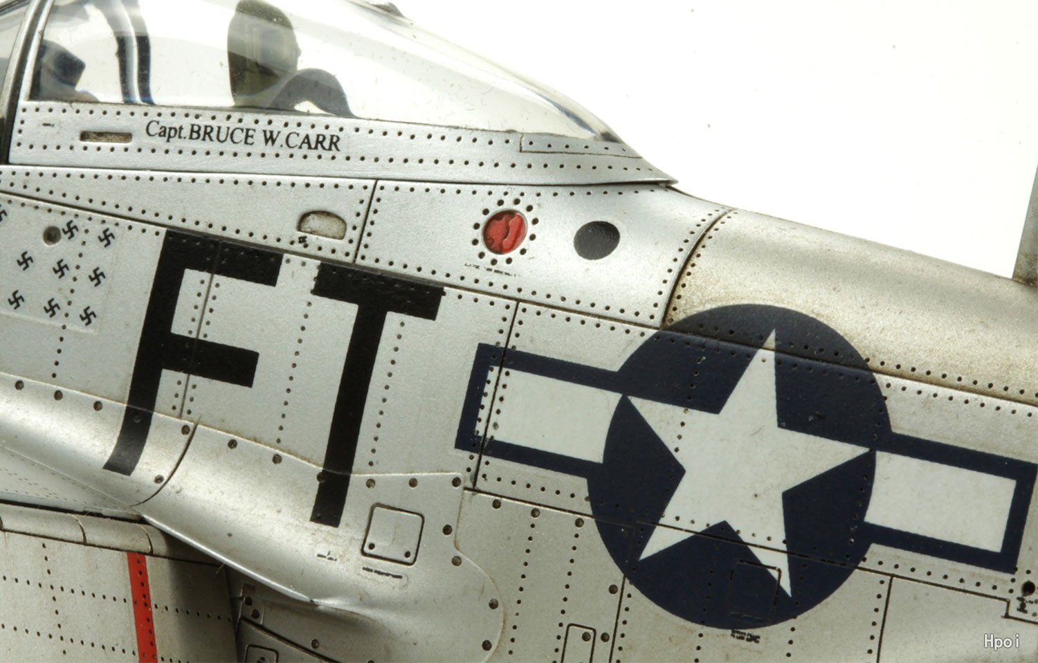 P-51“野马”战斗机是二战中综合性能最出色的单引擎战斗机。该机由美国北美航空研制,气动外形设计水平和动力水平在二战中均堪称顶尖。P-51D是“野马”系列中最重要的型号,该型号增加了油箱容量,同时改善了飞行员视野,是产量最大的“野马”。二战后期装备“野马”的美军空中优势非常明显,飞机的涂装也一改以往暗色调伪装色,转而直接裸露金属蒙皮,配以高饱和度的识别色以强化可视度。外表靓丽性能出众的“野马”自然成为了现在众多模型爱好者追捧的对象。