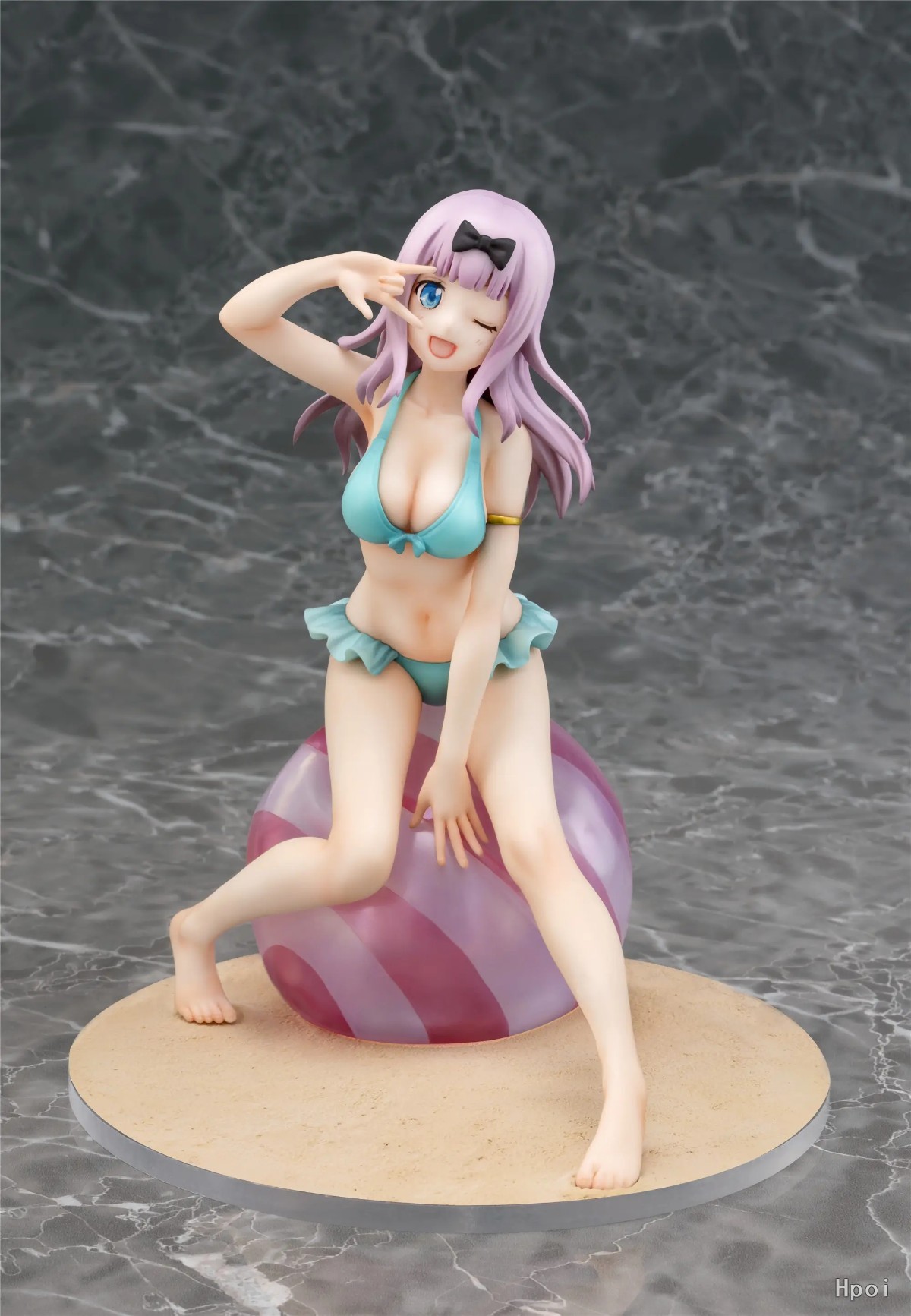出自TV動畫《輝夜姬想讓人告白~天才們的戀愛頭腦戰~》,秀知院學園的學生會書記「藤原千花」化身為1/7比例模型!將展露傲人身材的泳裝姿態製成模型。坐在沙灘球上方,擺出招牌笑容,將充滿魅力的千花迎接回家吧!