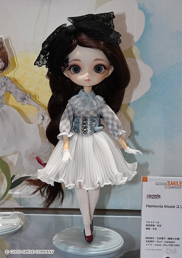 Good Smile Company旗下正統人偶品牌「Harmonia bloom」推出純潔可愛的白百合。蓬鬆的辮子髮型搭配大大的蕾絲蝴蝶結。臉部施加淡淡的粉紅陰影搭配偏粗的眉毛,展現清純風韻。玻璃眼珠採用清澈的灰色為基底,搭配金色線條來表現花粉韻味。服裝是白與灰為主的美麗洋裝與絲襪,讓人聯想白百合的模樣。此外,還搭配白手套、可拆式領子、芭蕾舞鞋等,造型十分講究。將這朵純潔美麗的花兒迎接回家吧!