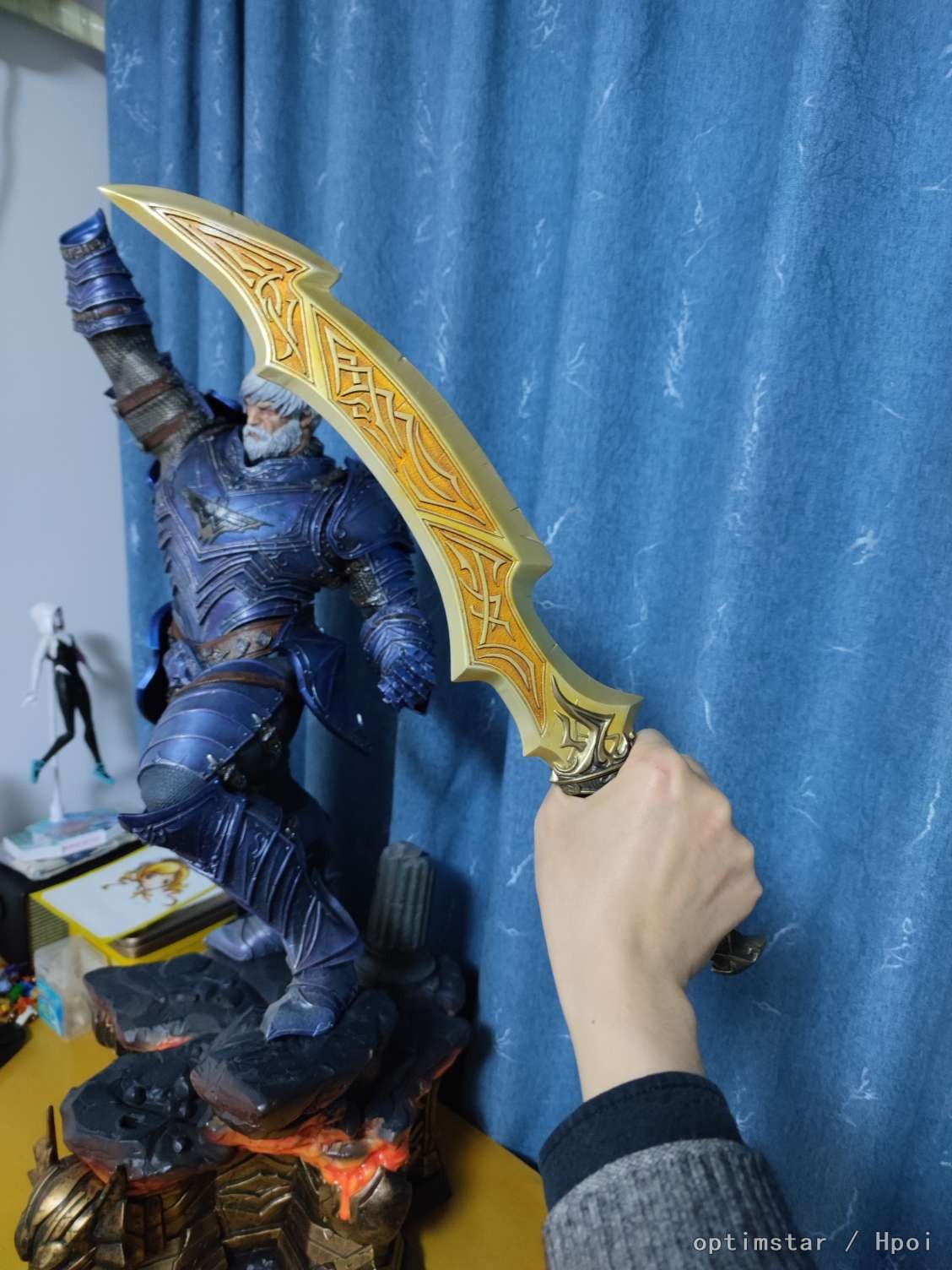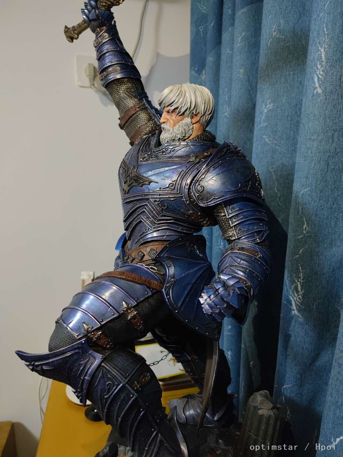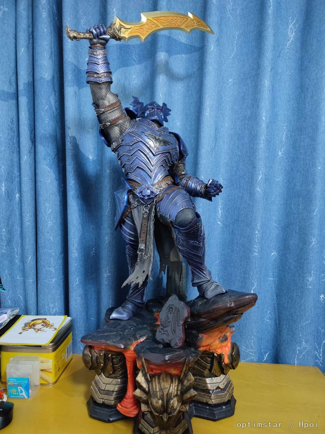 我们根据漫画家Jason Fabok的概念,以无情战魔最具代表性的姿势展示这个作品。蝙蝠侠站在岩石火山的展示底座上。残酷的人举起了臭名昭著的上帝杀手剑,高大威武,准备击倒任何阻挡他道路的人。
