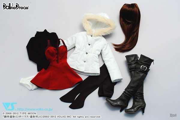 套装内容:Doll本体,假发,羽绒服,上衣,连衣裙,短裤,紧身衣,靴子