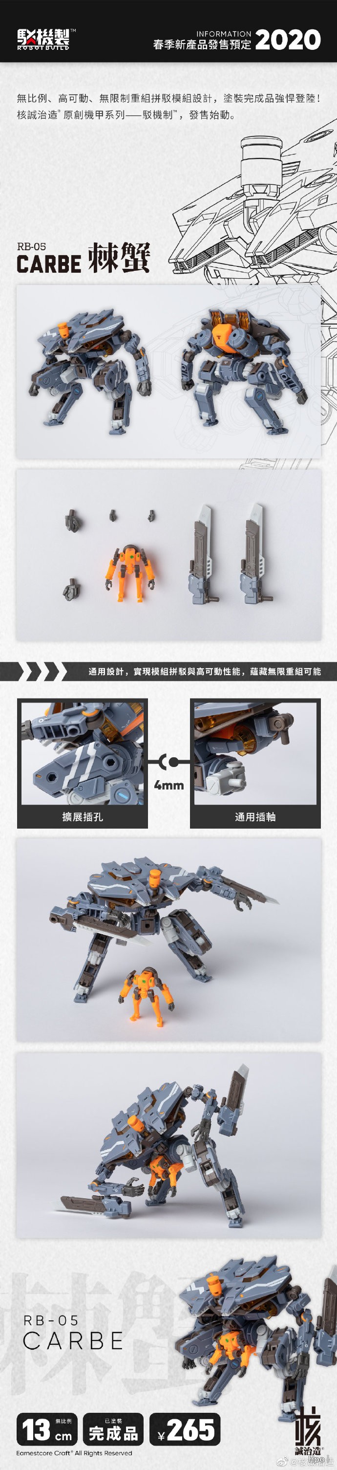 中文名称:核诚治造原创机甲系列 驳机制 RB-05 CARBE 棘蟹 通用色Ver