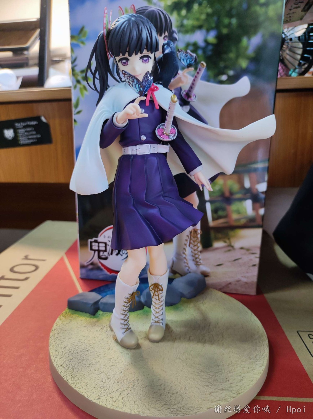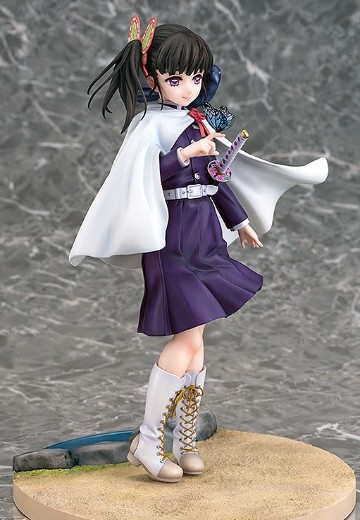 出自超人氣TV動畫《鬼滅之刃》,「栗花落香奈乎」化身為1/7比例模型登場。將香奈乎站在她居住的蝴蝶屋庭院的模樣製成模型。臉上露出穩重的笑容,手上停著一隻蝴蝶的模樣,散發出一種令人不禁看得入迷的神祕氛圍。此外,也特別精心呈現隊服、日輪刀、刀鍔和刀鞘等造型。